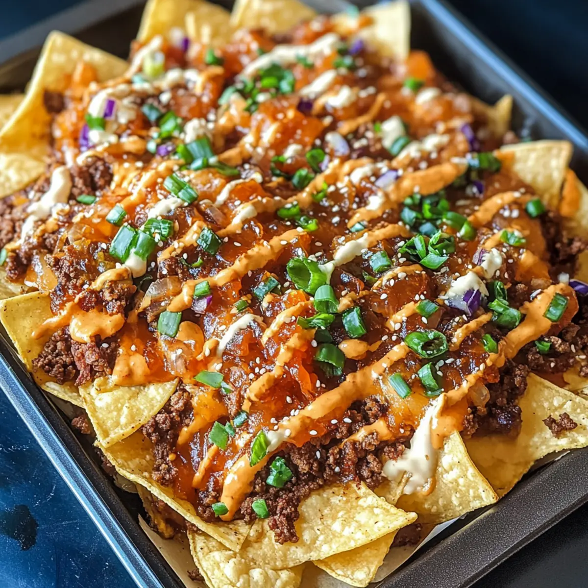 - Würze anpassen: Variiere die Menge an Sriracha in der Mayo je nach persönlichem Schärfeempfinden. So kannst du deine Koreanischen Rindfleisch Nachos perfekt abstimmen.