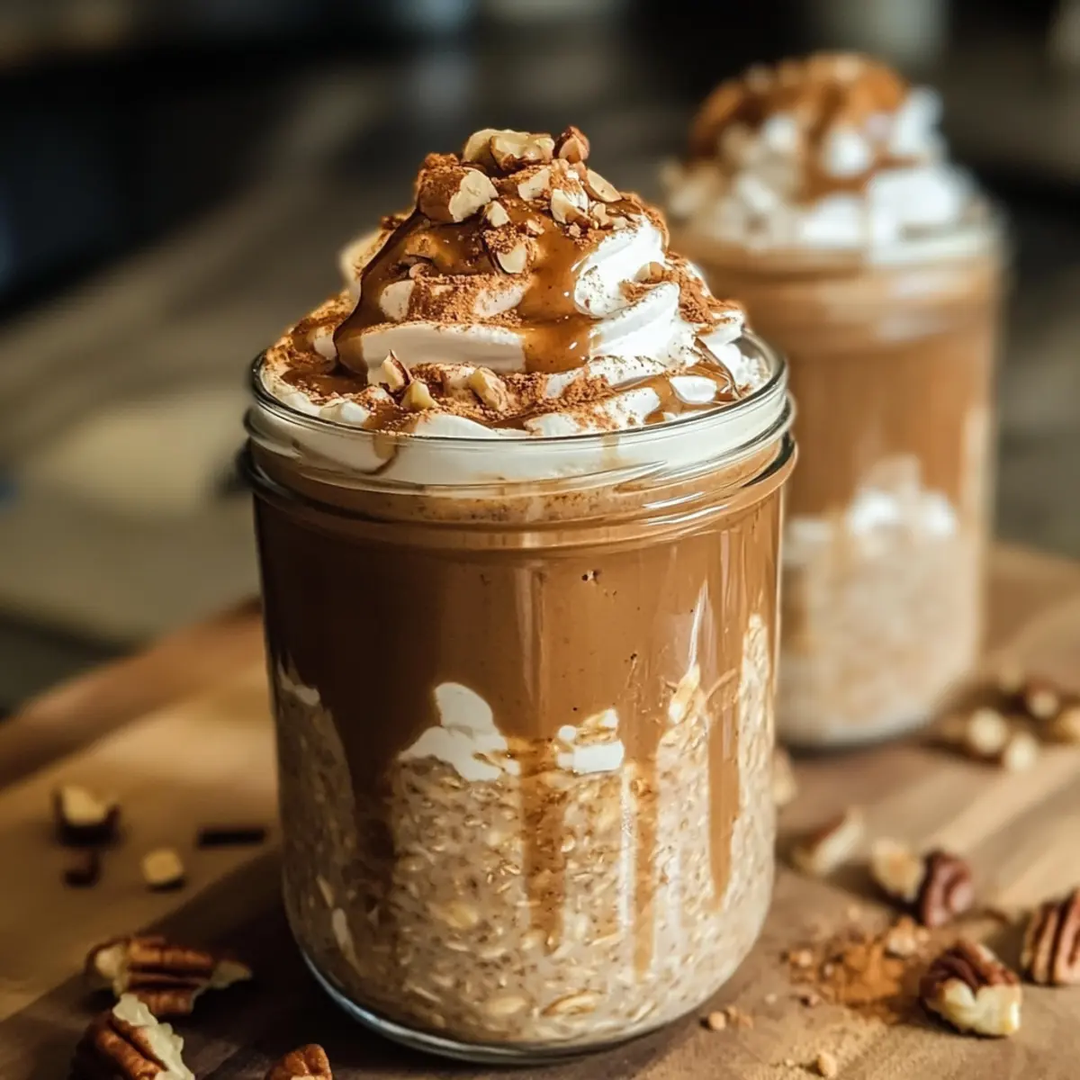Einfache Zubereitung: In nur fünf Minuten sind diese Gingerbread Latte Overnight Oats bereit für die Kühlung – ideal für beschäftigte Morgen.