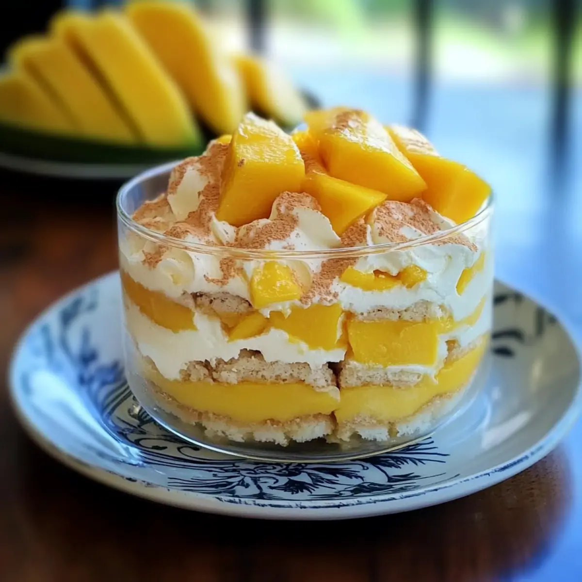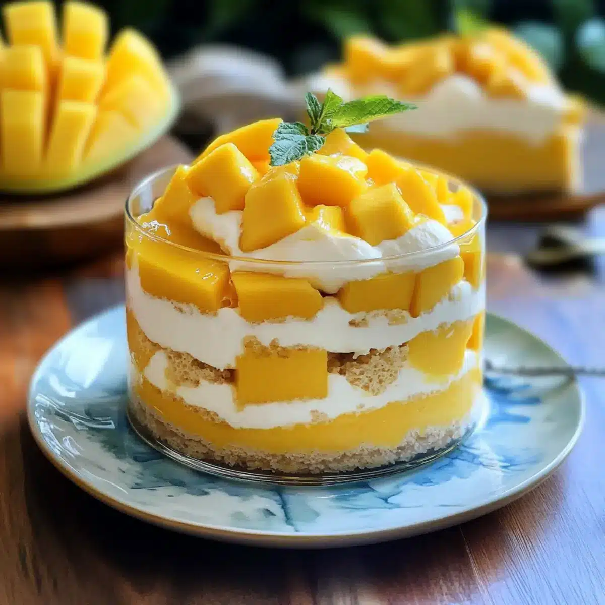 - Serviere den Mango Tiramisu mit frischen Mangostücken oder Minze.