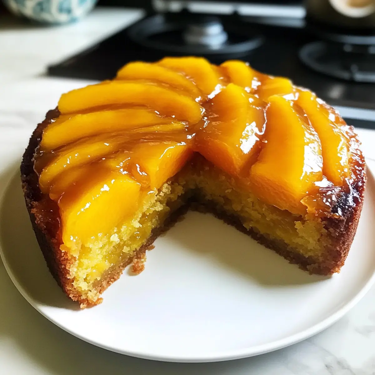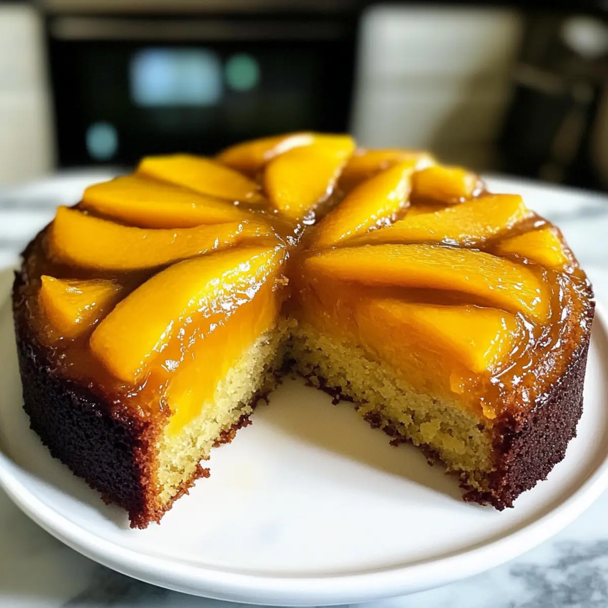 Einzigartig und Überraschend: Der Mango-Umgekehrte Kuchen hebt sich durch die Kombination von saftigen Mango-Scheiben und einem flauschigen Teig hervor, der perfekt karamellisiert ist.