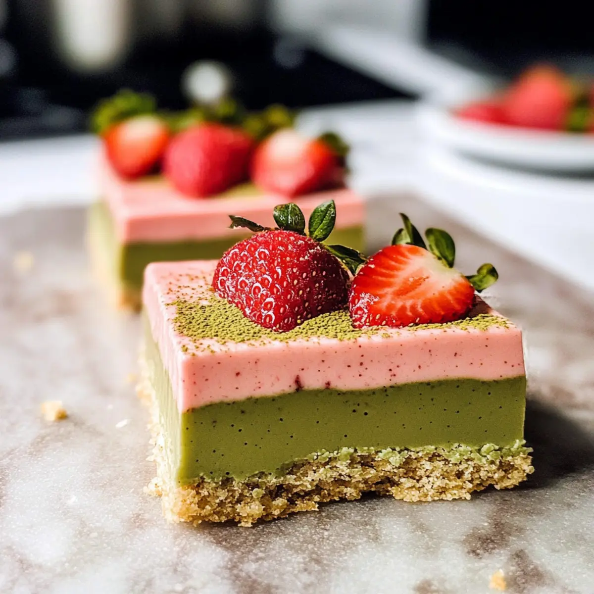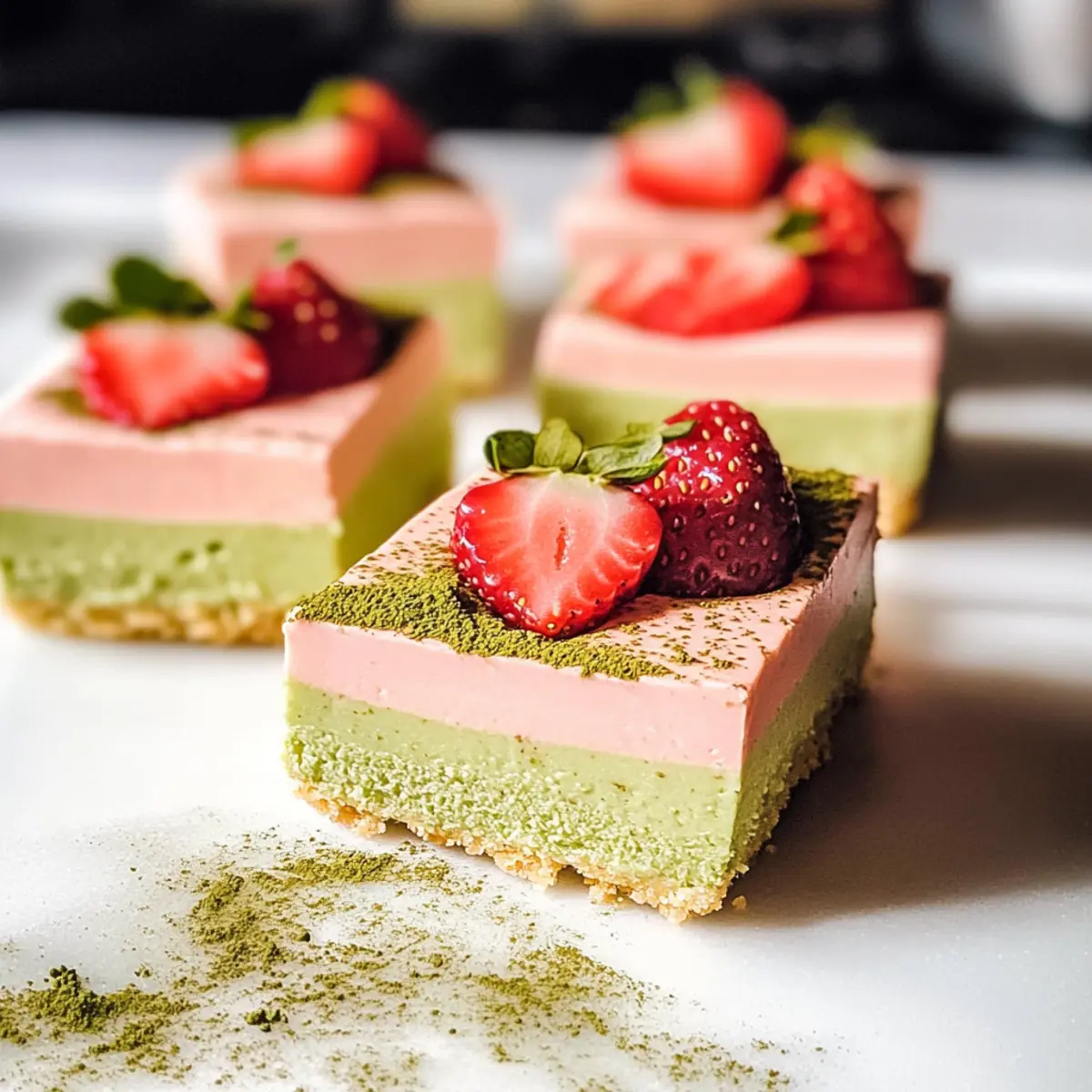 Köstliche Matcha Erdbeere Traumstücke ohne Backen