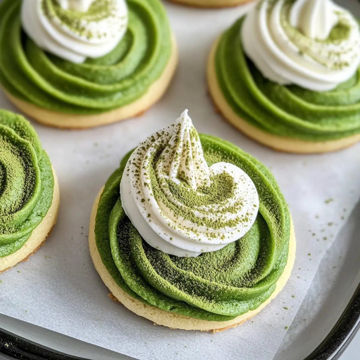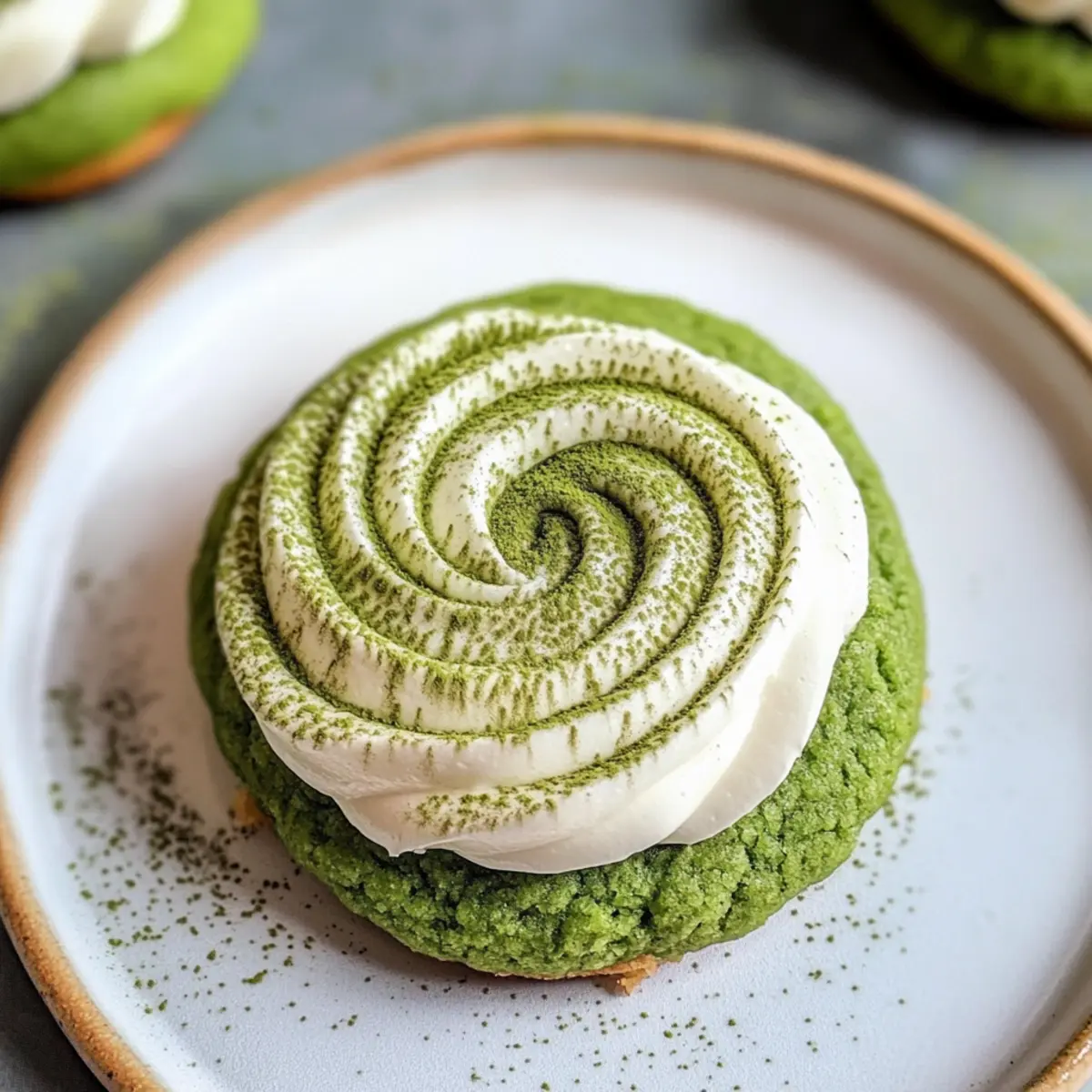 Sobald die Kekse vollständig abgekühlt sind, verwenden Sie einen Spritzbeutel, um die Mascarpone-Creme in sanften Wirbeln auf jeden Keks zu spritzen. Bestäuben Sie die Toppings großzügig mit zusätzlichem Matcha-Pulver, um den Geschmack und die Farbe hervorzuheben. Genießen Sie diese zarten und geschmackvollen Matcha Latte Kekse, die jeden Anlass verschönern.