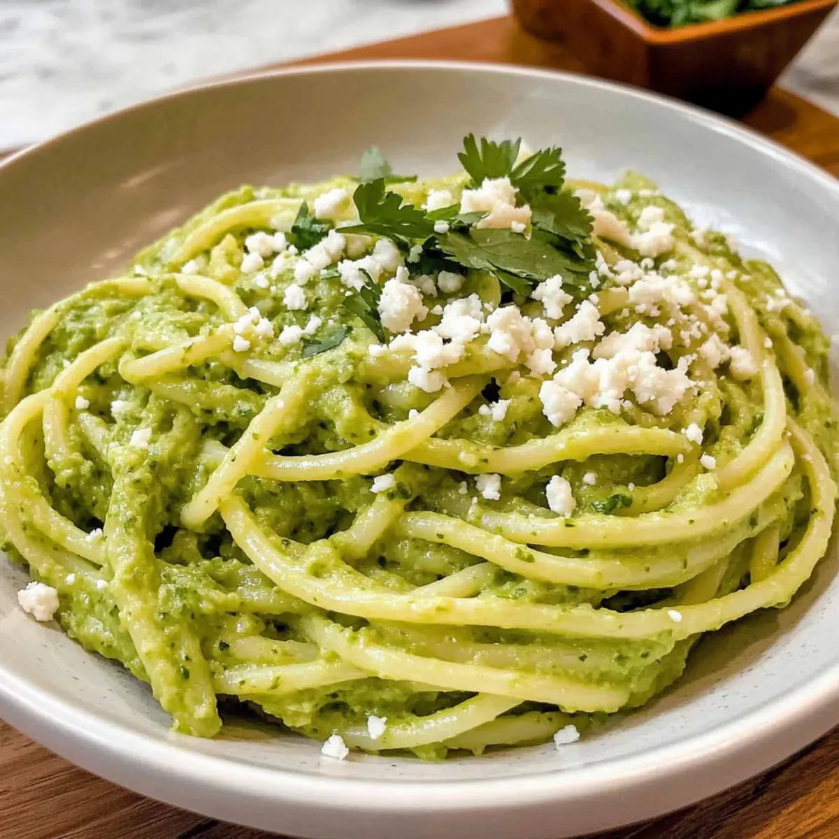 Einzigartiger Geschmack: Diese mexikanischen grünen Spaghetti kombinieren den unverwechselbaren Geschmack von gerösteten Poblano-Paprika und frischem Koriander für ein Geschmackserlebnis, das Sie umhauen wird.