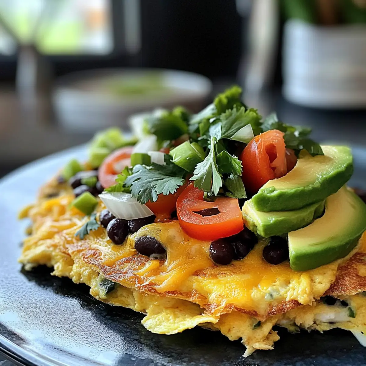 Köstliches Mexikanisches Omelett mit schwarzen Bohnen
