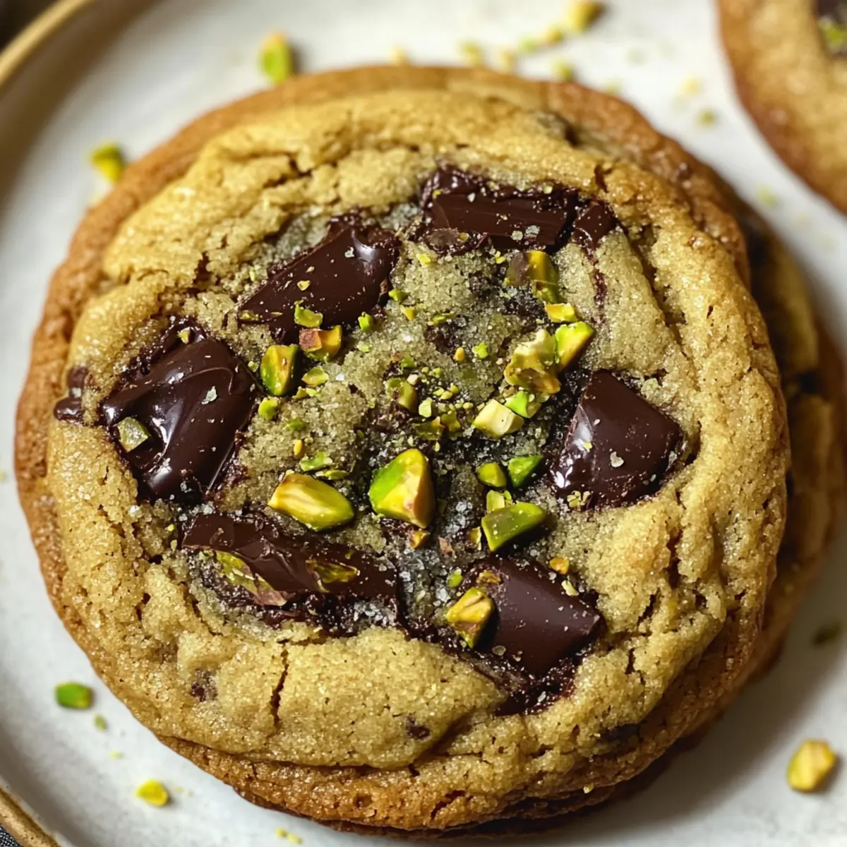 Vor dem Servieren einen Hauch von grobem Meersalz über die warmen Kekse streuen, um den Geschmack der Pistazien-Schokoladenstückchen zusätzlich zu heben und für eine leckere, salzige Note zu sorgen.