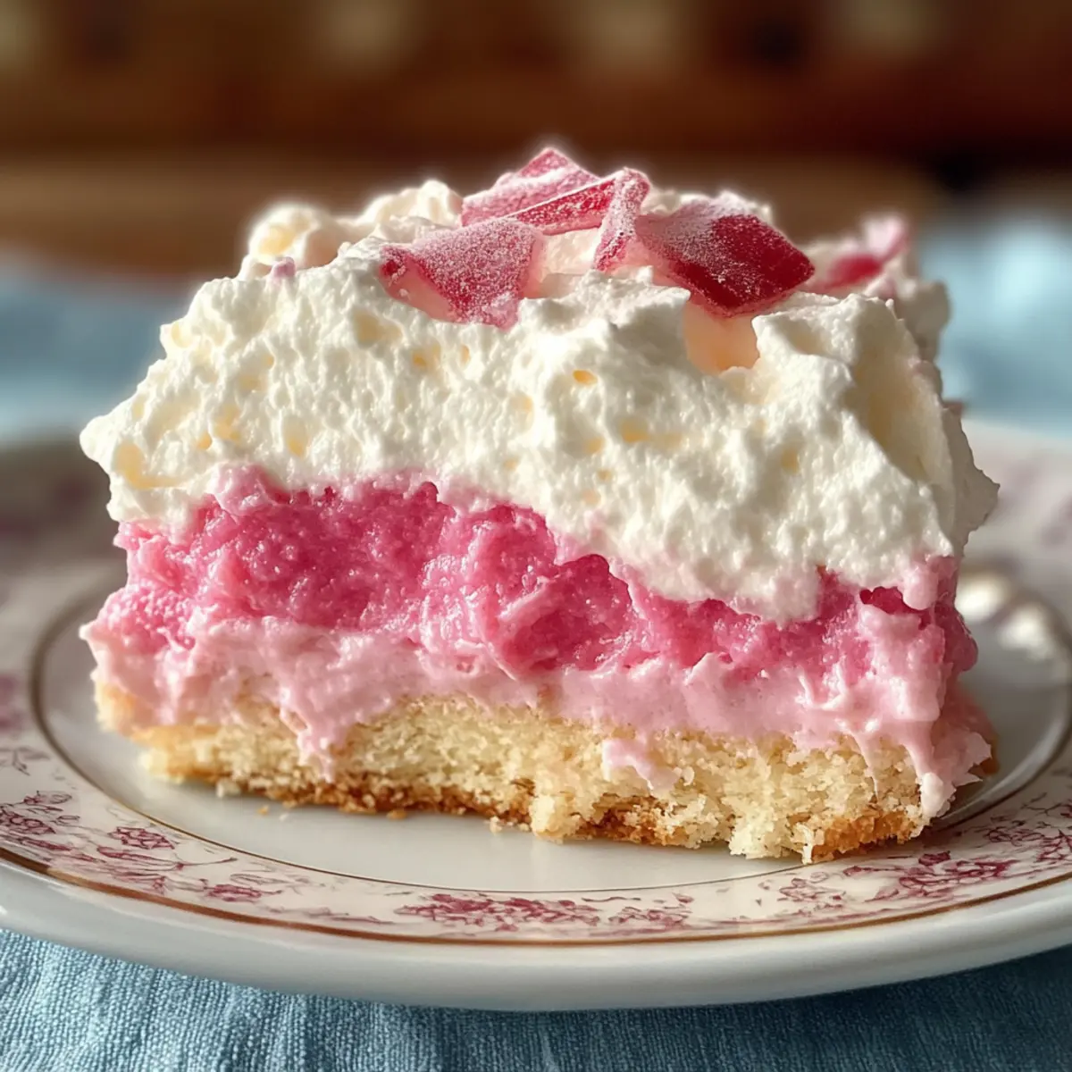 Den Rhabarber Fluff vollständig abkühlen lassen, bevor ihr ihn in Quadrate schneidet. Ein schöner Tipp ist, das Dessert vor dem Servieren mit Puderzucker oder frischen Minzblättern zu garnieren, um das Aussehen und den Genuss zu verbessern.