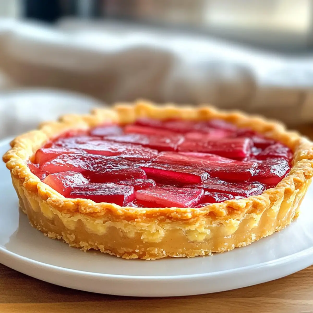 Lass dich von dieser himmlischen Rhabarberpudding-Tarte verführen und kombiniere sie mit einer leckeren Creme Schlag oder einem aromatischen Tee!