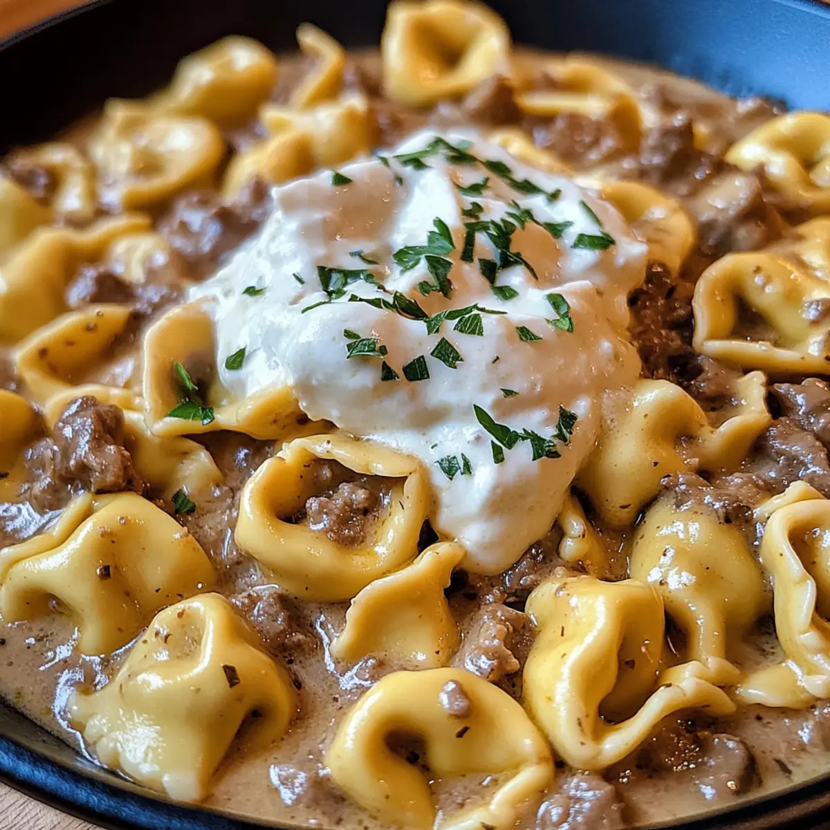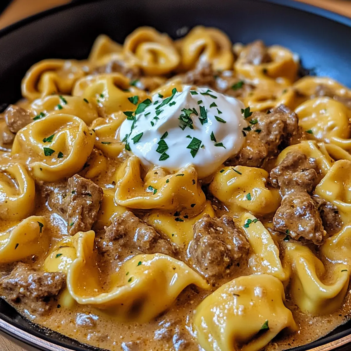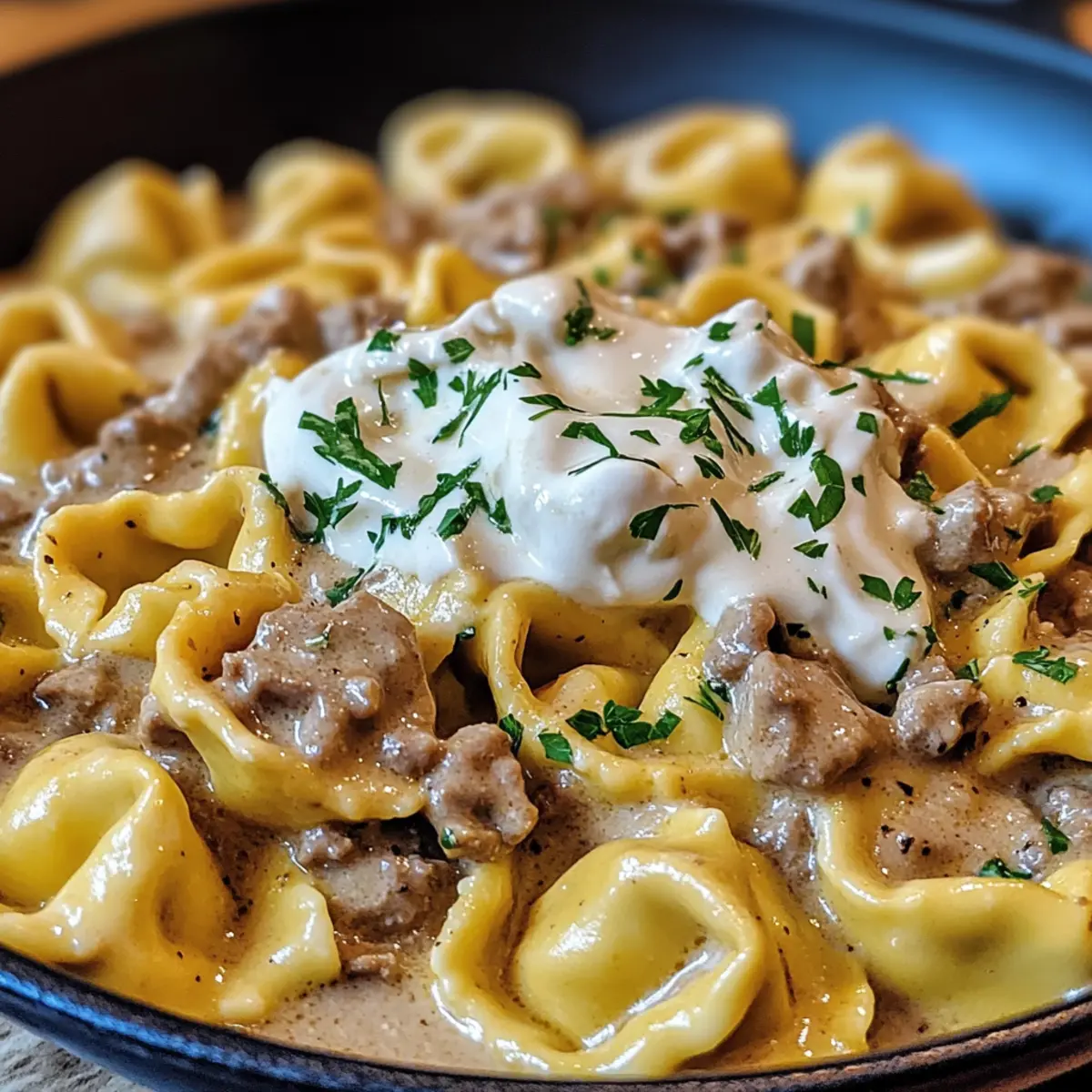 Schnelle Rinderstroganoff-Tortellini für die ganze Familie