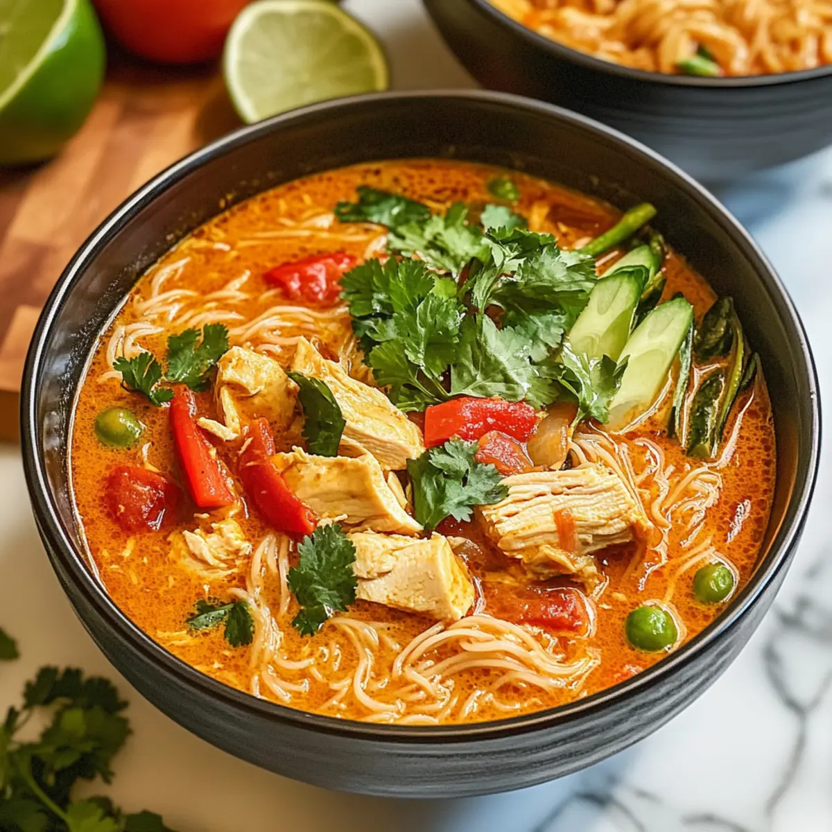 Individuell anpassbar: Du kannst diese Rote Curry Nudel-Suppe ganz nach deinem Geschmack gestalten, indem du verschiedene Gemüse oder Proteine wie Hähnchen, Shrimp oder Tofu hinzufügst.