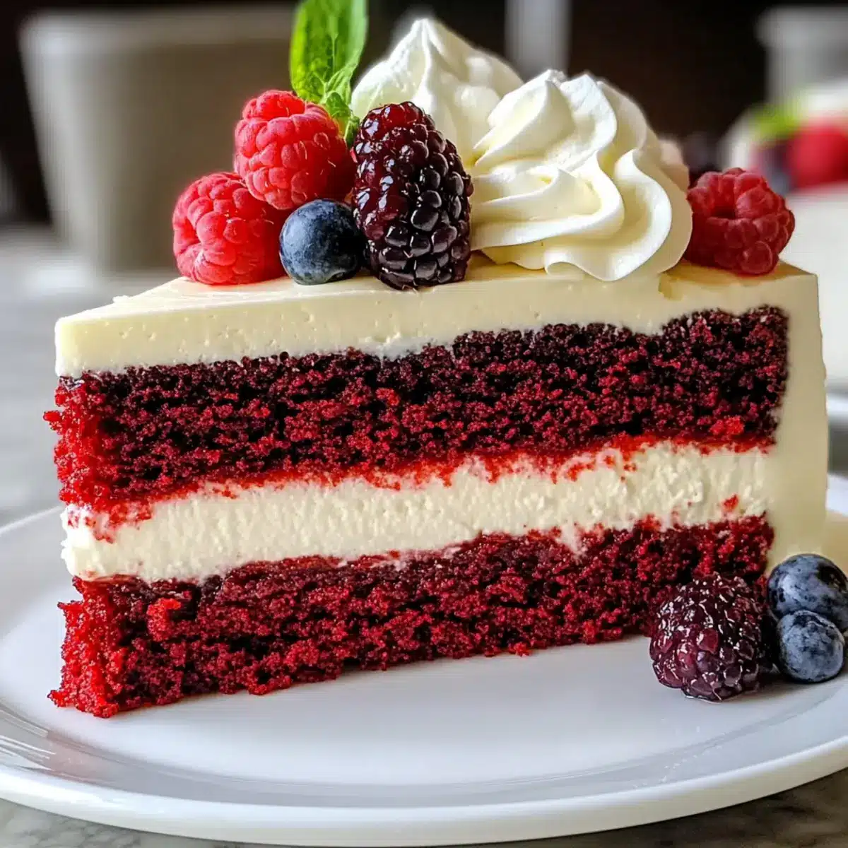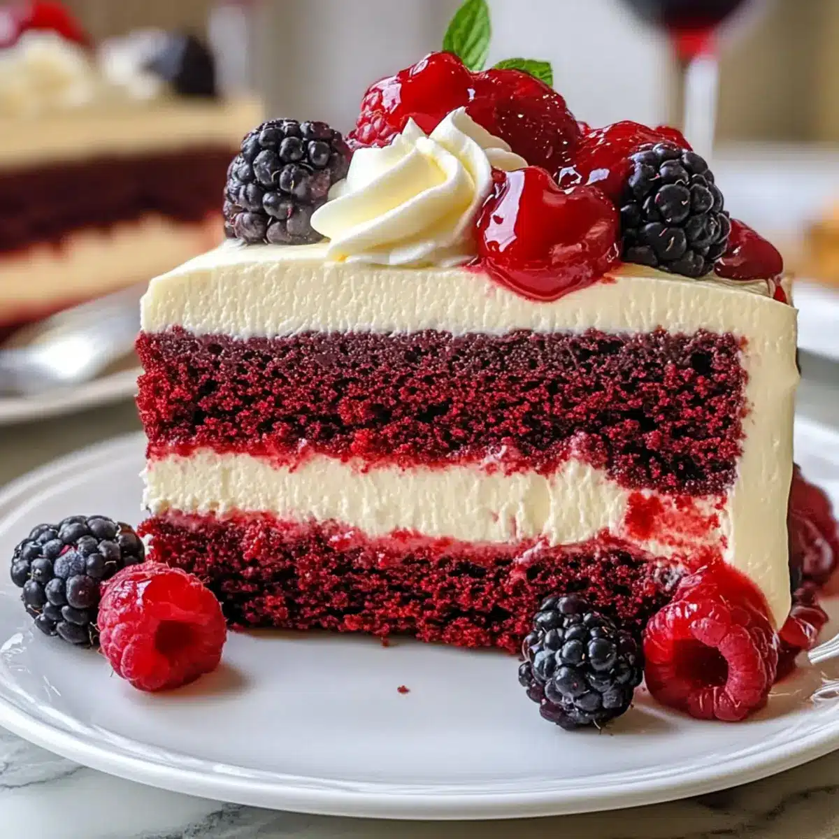 - Frische Beeren & Rote Samt Krümel – optionale Garnierungen, die Farbe und Textur hinzufügen; perfekt für einen festlichen Touch.