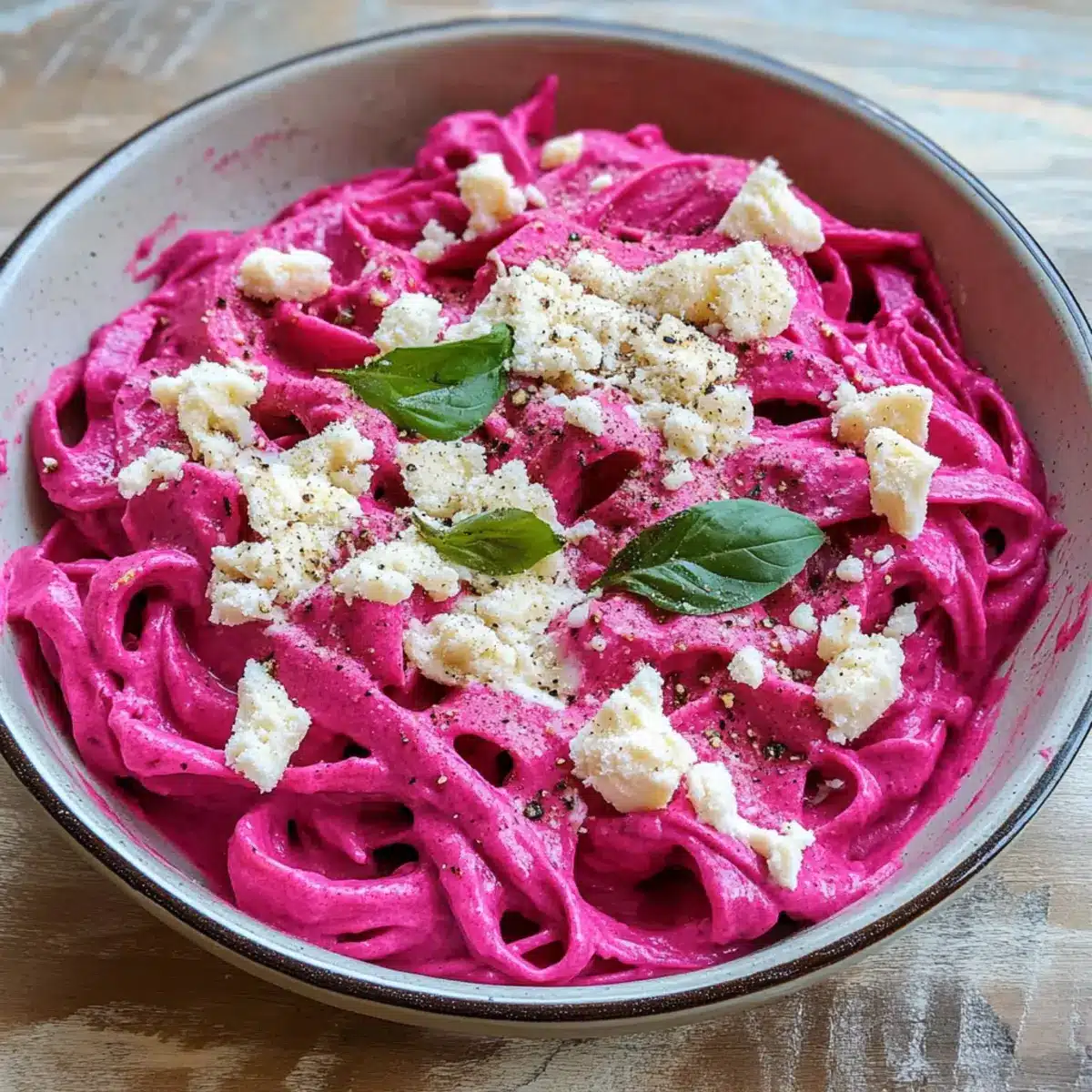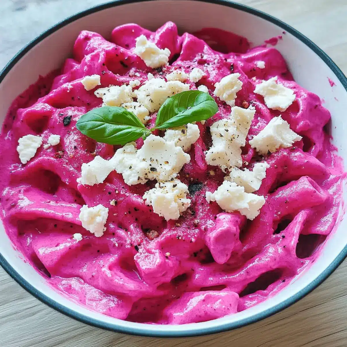 Vibrante Farbe: Die leuchtend pinke Farbe der Rübenpasta zieht alle Blicke auf sich und bringt Freude auf den Tisch.