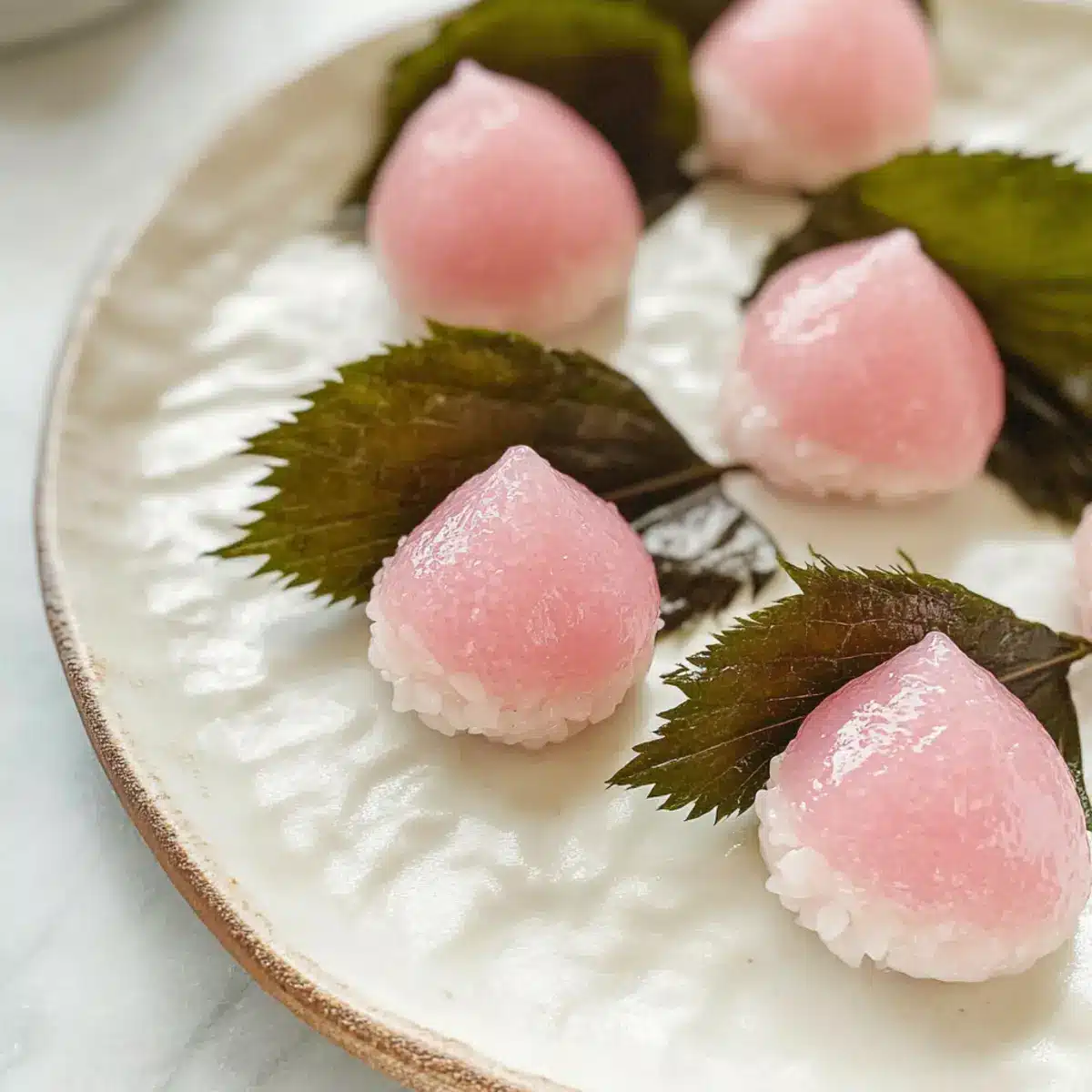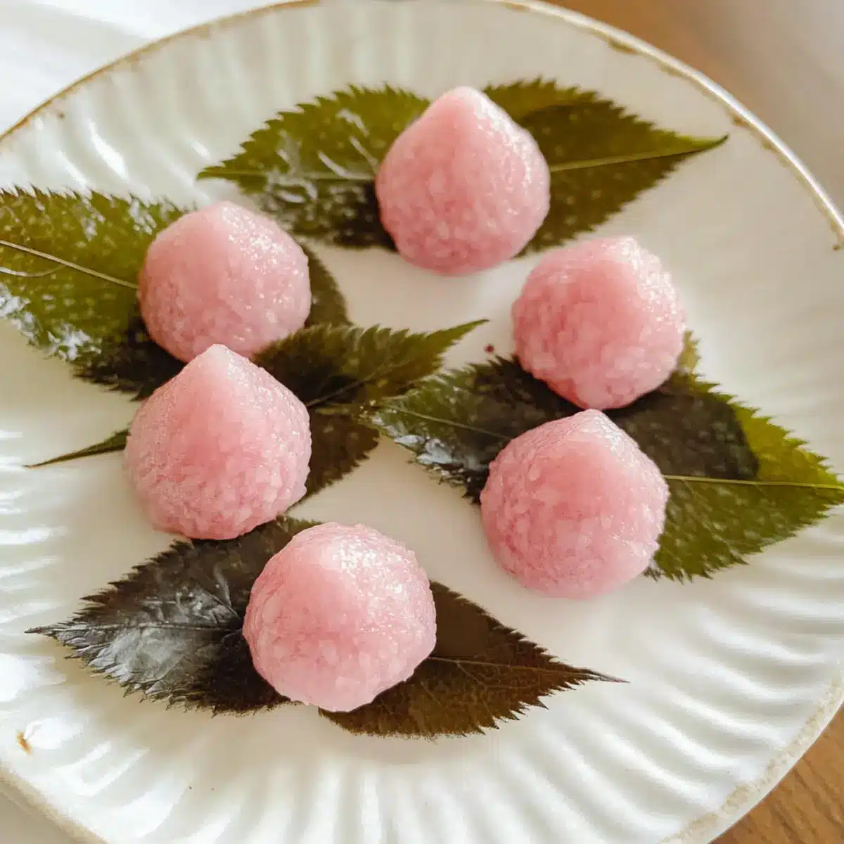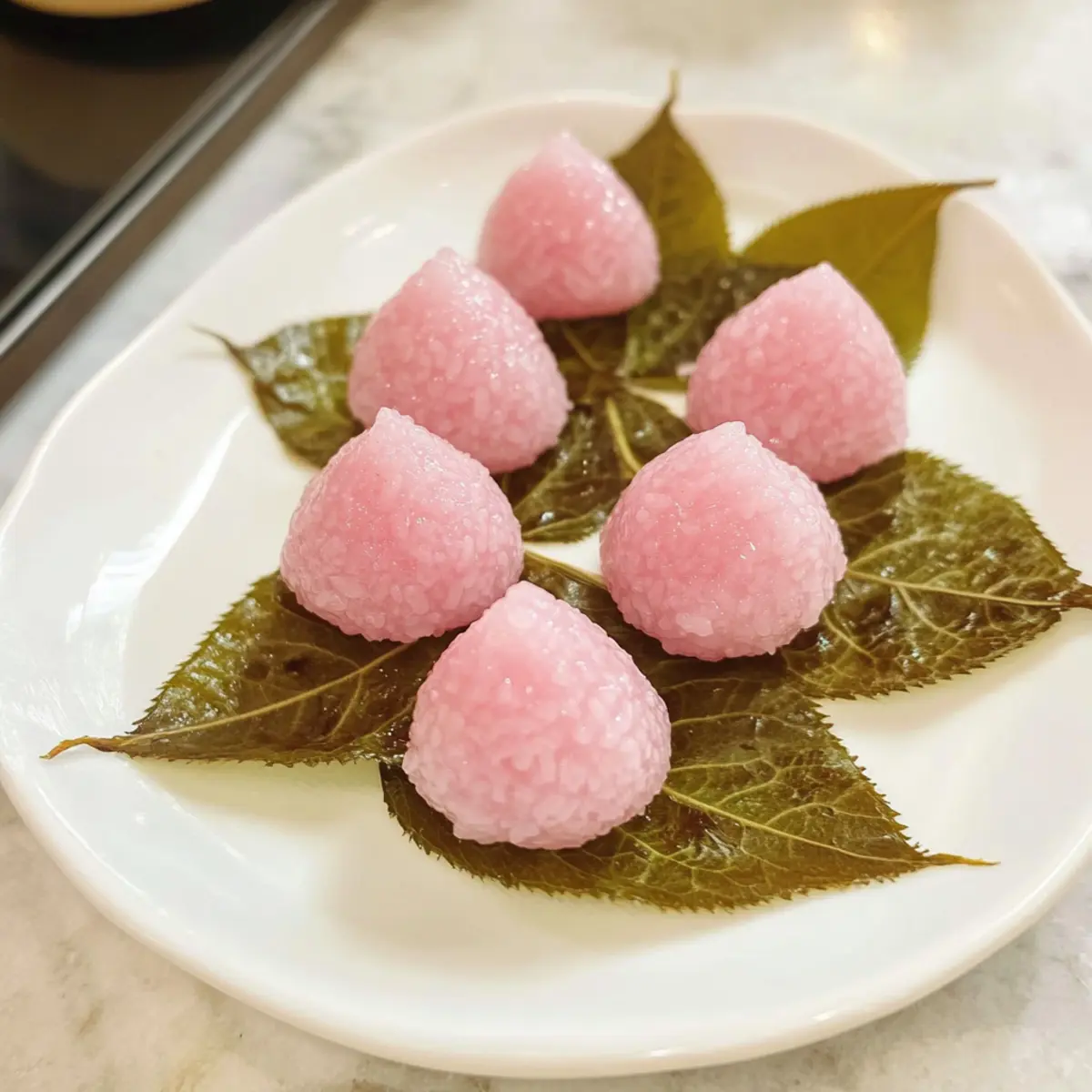 - Eingelegte Sakura-Blätter – Sie umhüllen das Mochi und verleihen ihm einen einzigartigen salzigen Geschmack; bei Bedarf können auch salz-eingelegte Blätter verwendet werden.