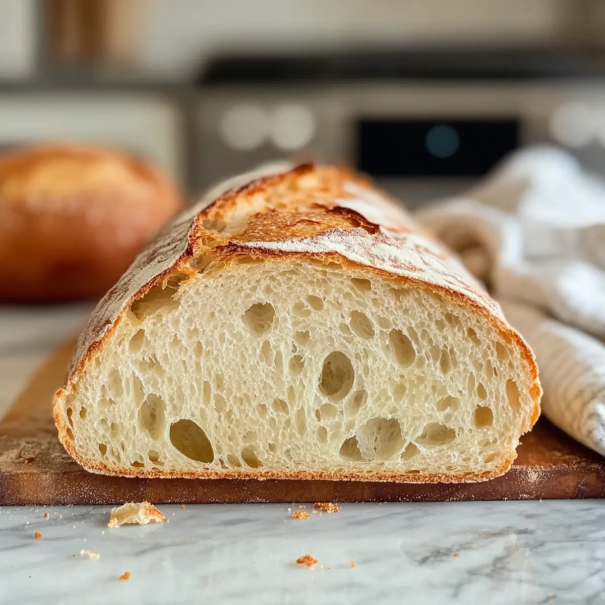 Legen Sie die geformten Laibe auf ein mit Backpapier ausgelegtes Backblech. Decken Sie sie erneut mit einem Tuch ab und lassen Sie sie 1-2 Stunden ruhen, bis sie sichtbar aufgegangen und luftig sind. Dieses zweite Gehen ist wichtig, um die ideale Textur für Ihr Sauerteigabfälle französisches Brot zu erreichen.