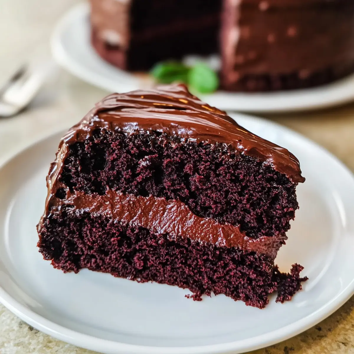 Kühlschrank: Bedecken Sie den Schokoladen-Rübenkuchen mit Frischhaltefolie oder in einem luftdichten Behälter für bis zu 4 Tage im Kühlschrank.