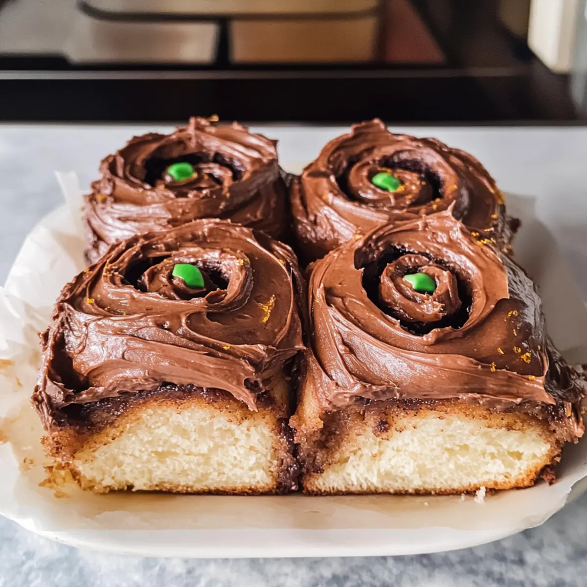 - Lasse die Schokoladenohrange nach dem Backen ein wenig abkühlen. Die Glasur großzügig auf den Rollen verteilen und nach Belieben mit bunten Streuseln dekorieren.