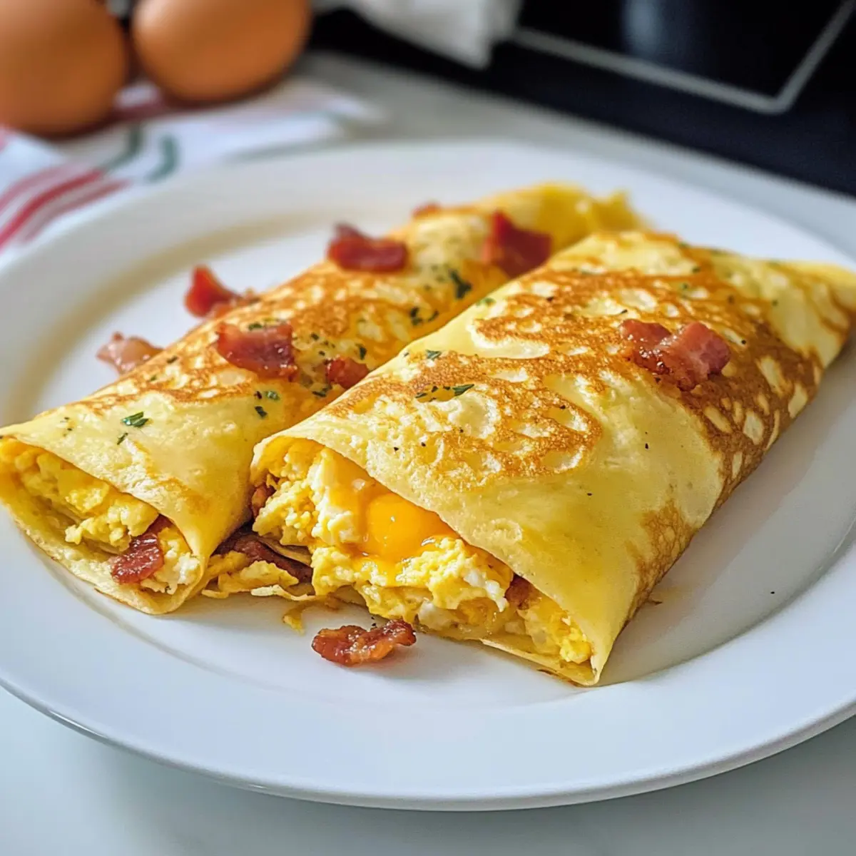 Bereite diese köstlichen Speck, Ei und Käse Crepes für ein Frühstücksvergnügen der Extraklasse zu!