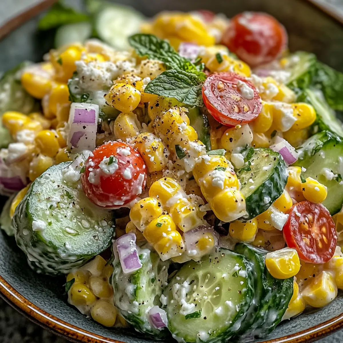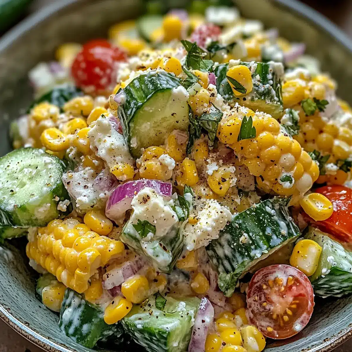 Variationen wagen: Experimentiere mit frischen Kräutern anstelle von Koriander, um deinem Straßenmais Cremige Gurke Salat eine ganz eigene Note zu verleihen.