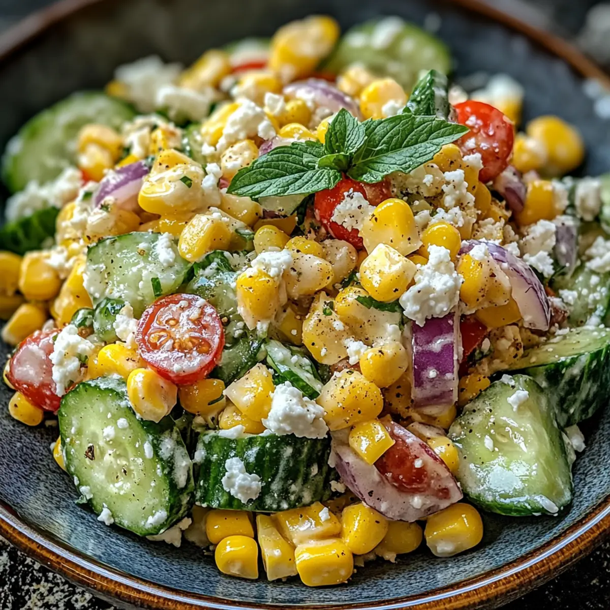 Vor dem Servieren streue den zerbröselten Feta-Käse und frischen Koriander über den Salat. Dies verleiht dem Gericht eine zusätzliche Textur und Frische. Richte den Straßenmais Cremige Gurke Salat in einer schönen Schüssel an und serviere ihn sofort, damit die Aromen optimal zur Geltung kommen.