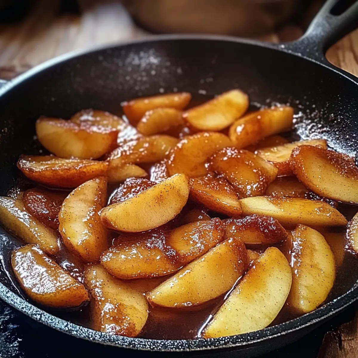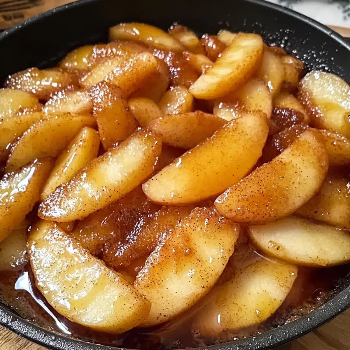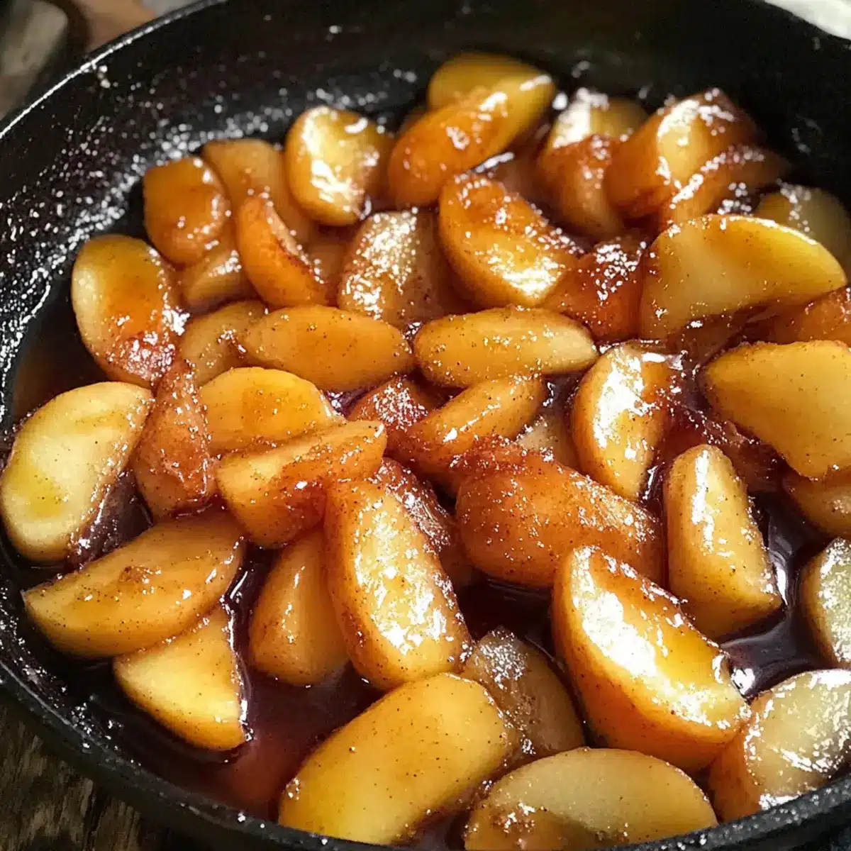 - Wenn die Äpfel glänzen und goldbraun sind, nehmen Sie die Pfanne vom Herd. Lassen Sie die Äpfel leicht abkühlen und servieren Sie sie warm.