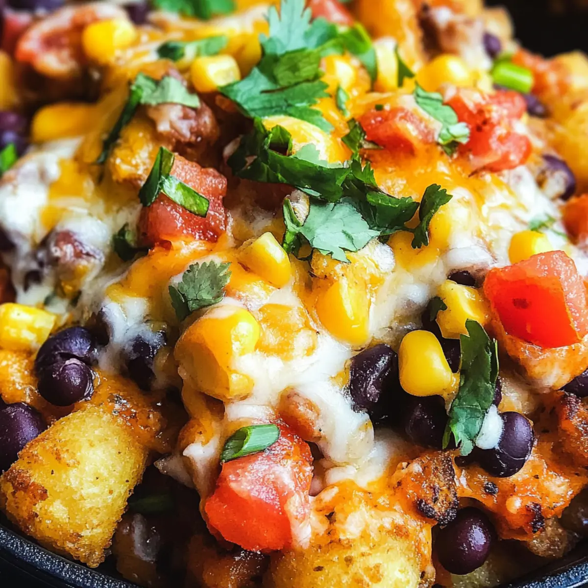 Es war einer dieser Tage, an denen ich einfach nur nach einem schnellen, aber dennoch herzhaften Snack verlangte. In einem Moment der Inspiration schoss es mir in den Kopf: Tater Tot Nachos! Warum nicht die geliebten Nachos mit knusprigen Tater Tots kombinieren? Diese Cheesy Veggie Totchos sind nicht nur ein köstlicher Genuss, sondern auch perfekt, um Ihre Freunde bei einer Zusammenkunft zu beeindrucken oder einfach mal einen Abend mit der Familie zu verschönern. Sie sind vegetarisch und dank der zusätzlichen Bohnen und gesunden Toppings eine wahre Geschmacksexplosion – und das Beste daran? Die Zubereitung ist ein Kinderspiel! Stellen Sie sich das knusprige Erlebnis vor, wenn die Tater Tots mit geschmolzenem Käse und bunten, frischen Zutaten harmonieren. Neugierig, wie Sie diese leckere Kreation nachkochen können? Lassen Sie uns gleich loslegen!