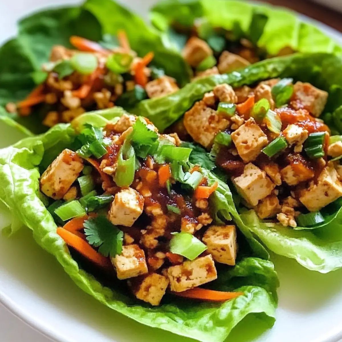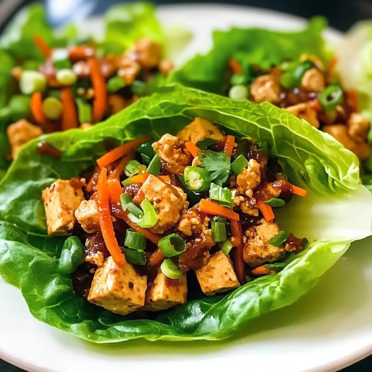 - Servieren: Fülle ein Blatt Buttersalat mit der Tofu-Mischung und garniere nach Belieben.