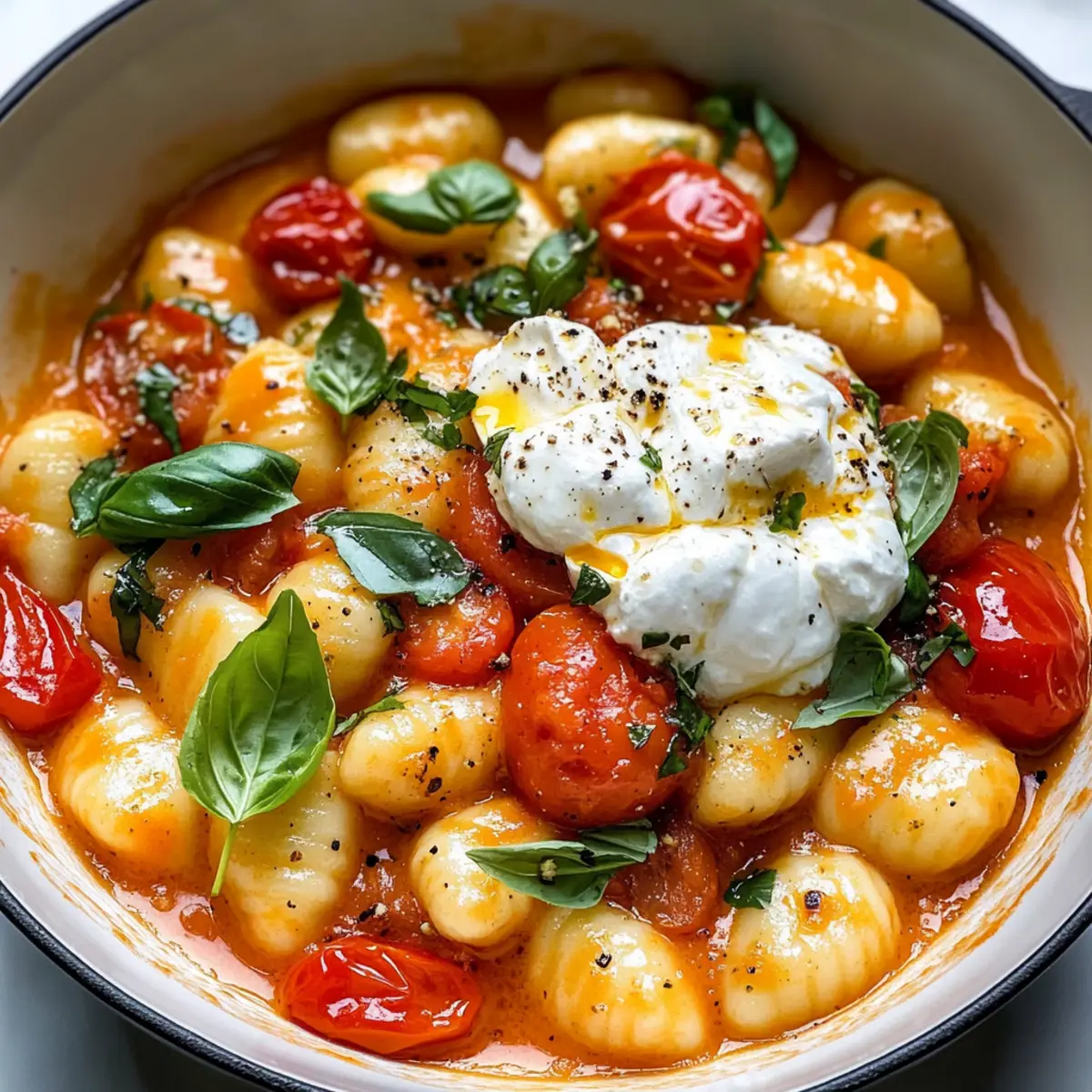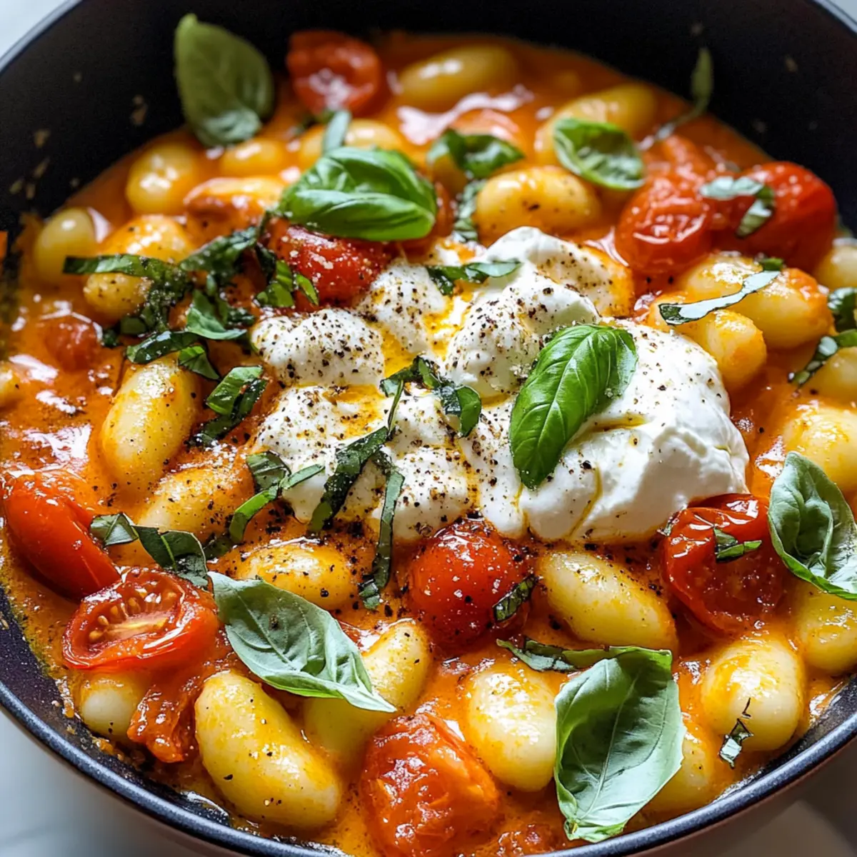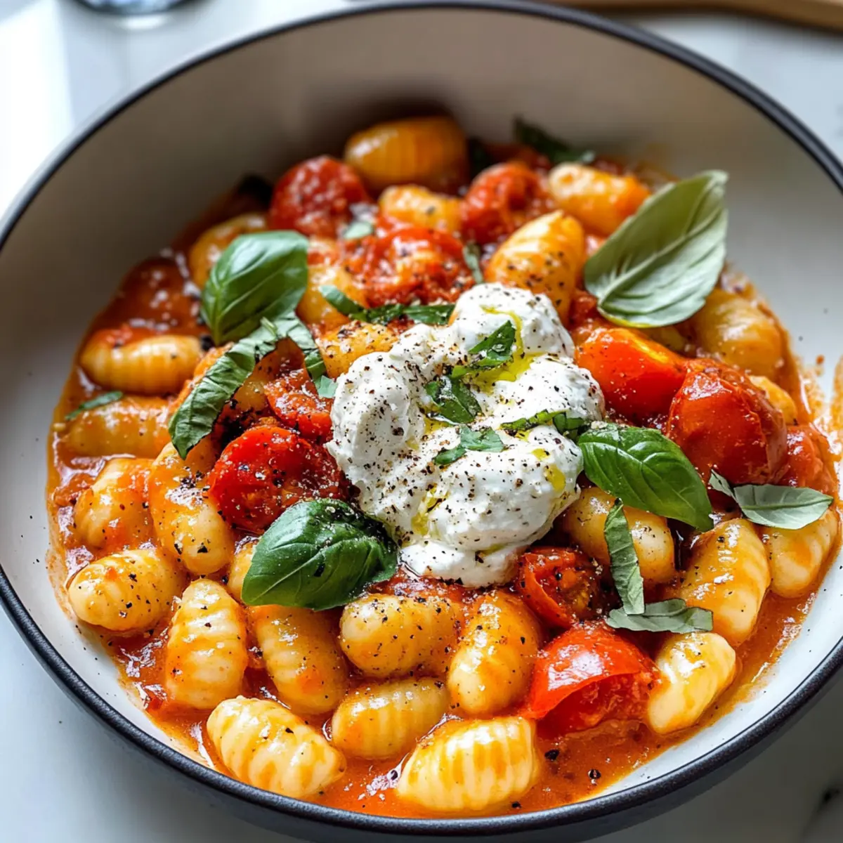 Schnelle Tomaten-Gnocchi mit cremiger Burrata