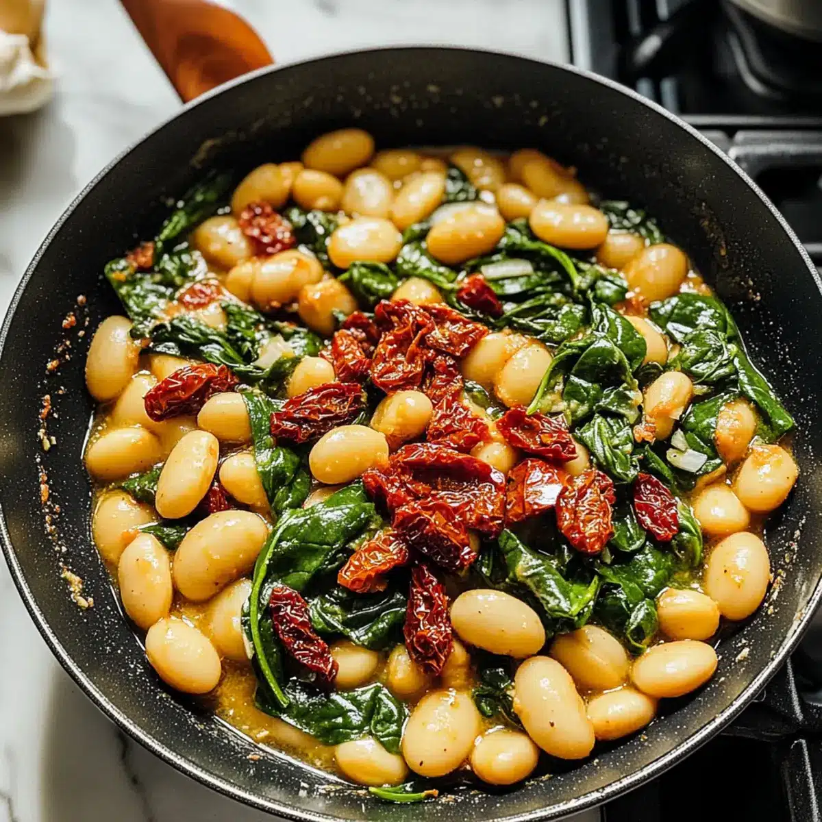 Schritt-für-Schritt-Anleitung für Toskanische Butterbohnen mit Spinat und getrockneten Tomaten