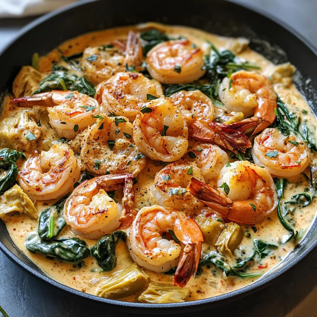Es gibt Tage, an denen ich nach einem langen Arbeitstag zur Küche komme und einfach nur schnell ein leckeres Abendessen zubereiten möchte. Genau dann ist das Rezept für diese Toskanischen Garnelen genau das Richtige! In nur 30 Minuten zaubert dieses köstliche One-Pan-Gericht eine Aromenvielfalt auf den Tisch, die an Italien erinnert. Zarte Garnelen, frisch sautierter Spinat, artischockenherz Stückchen und sonnengetrocknete Tomaten vereinen sich in einer cremigen Sauce, die nicht nur gut aussieht, sondern auch umwerfend schmeckt. Außerdem ist dieses Gericht nicht nur ein Genuss für den Gaumen, sondern auch eine großartige Wahl für alle, die auf kohlenhydratarme Ernährung setzen oder sich glutenfrei ernähren möchten. Seid ihr bereit, eure Küchenschürzen anzuziehen und dieses köstliche Gericht auszuprobieren?