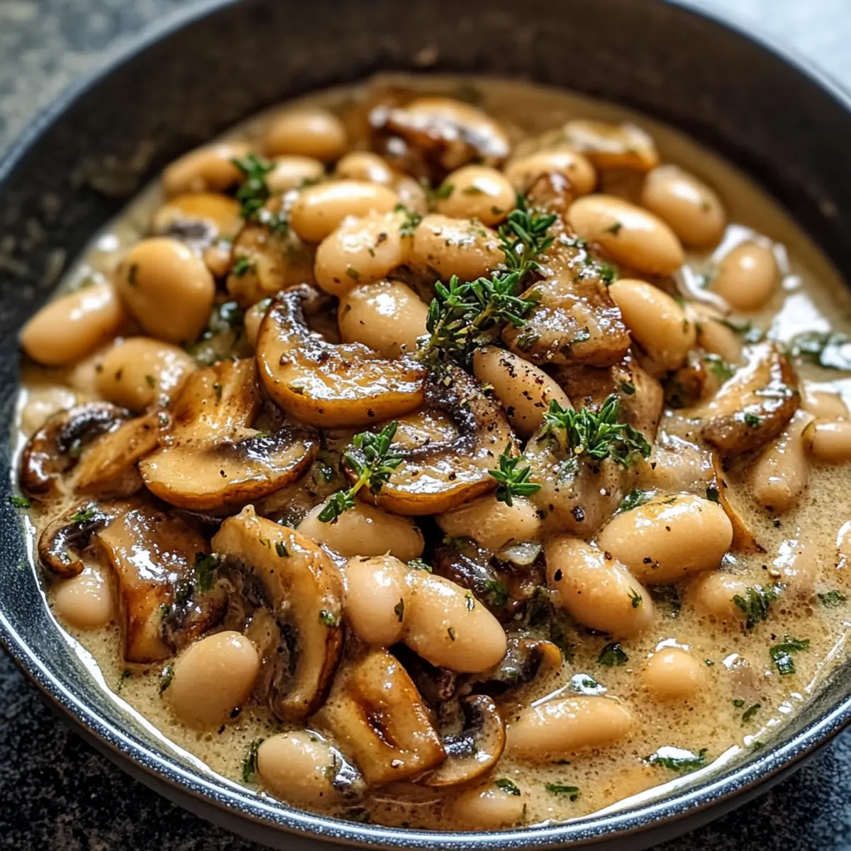 Schritt-für-Schritt-Anleitung für cremige weiße Bohnen und Pilze