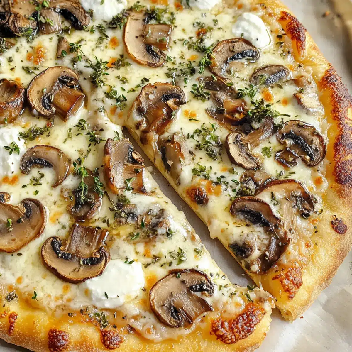 Diese weiße Pilz Pizza ist nicht nur lecker, sondern auch ideal für die Vorbereitung! Du kannst die Pilze bis zu 3 Tage im Voraus sautieren und in einem luftdichten Behälter im Kühlschrank aufbewahren, um ihre Frische zu bewahren. Stelle sicher, dass sie gut abgekühlt sind, bevor du sie lagerst, um eine matschige Textur zu vermeiden. Den Pizza-Teig kannst du ebenfalls bis zu 24 Stunden vorher ausrollen und im Kühlschrank lagern, damit er beim Backen schön aufbläht. Wenn du bereit bist, deine Pizza zu genießen, platziere einfach die Mozzarella- und Ricotta-Käse auf dem Teig, füge die vorbereiteten Pilze hinzu und backe sie für 15-20 Minuten bei 232°C, um die perfekte Kombination aus knusprigem Boden und schmelzendem Käse zu erreichen. So hast du in kürzester Zeit ein wunderbares Abendessen auf dem Tisch, ideal für beschäftigte Wochentage!
