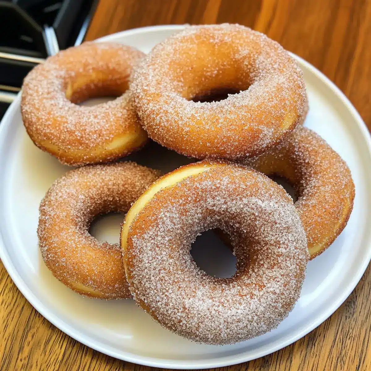 - Serviere die Zimt Kuchen Donuts frisch und warm.