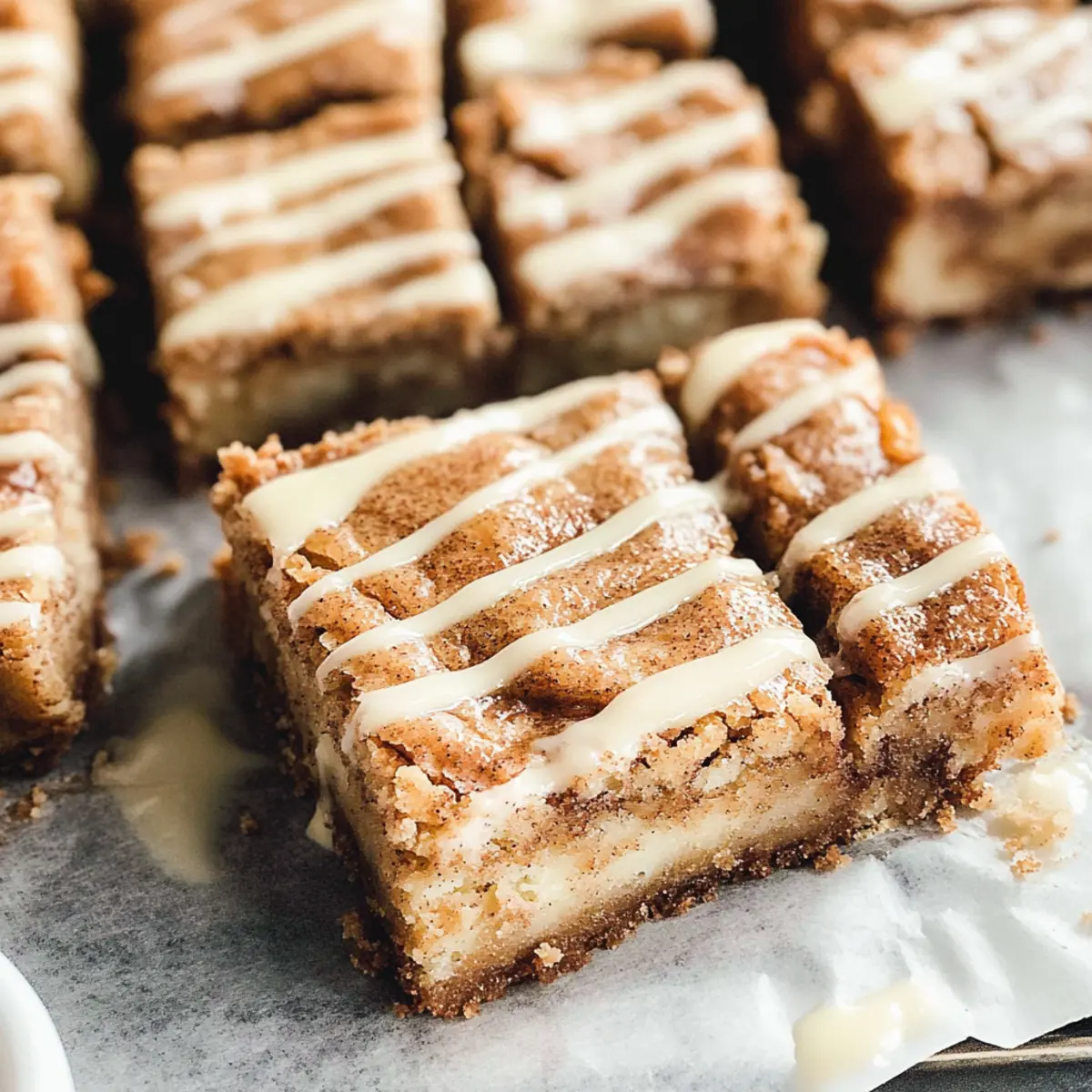 Träufelt die abgekühlte Glasur über die Zimtschnecken Blondies und schneidet sie in ansprechende Quadrate. Serviert sie warm oder bei Zimmertemperatur als perfekten süßen Snack oder Nachmittagskaffee.