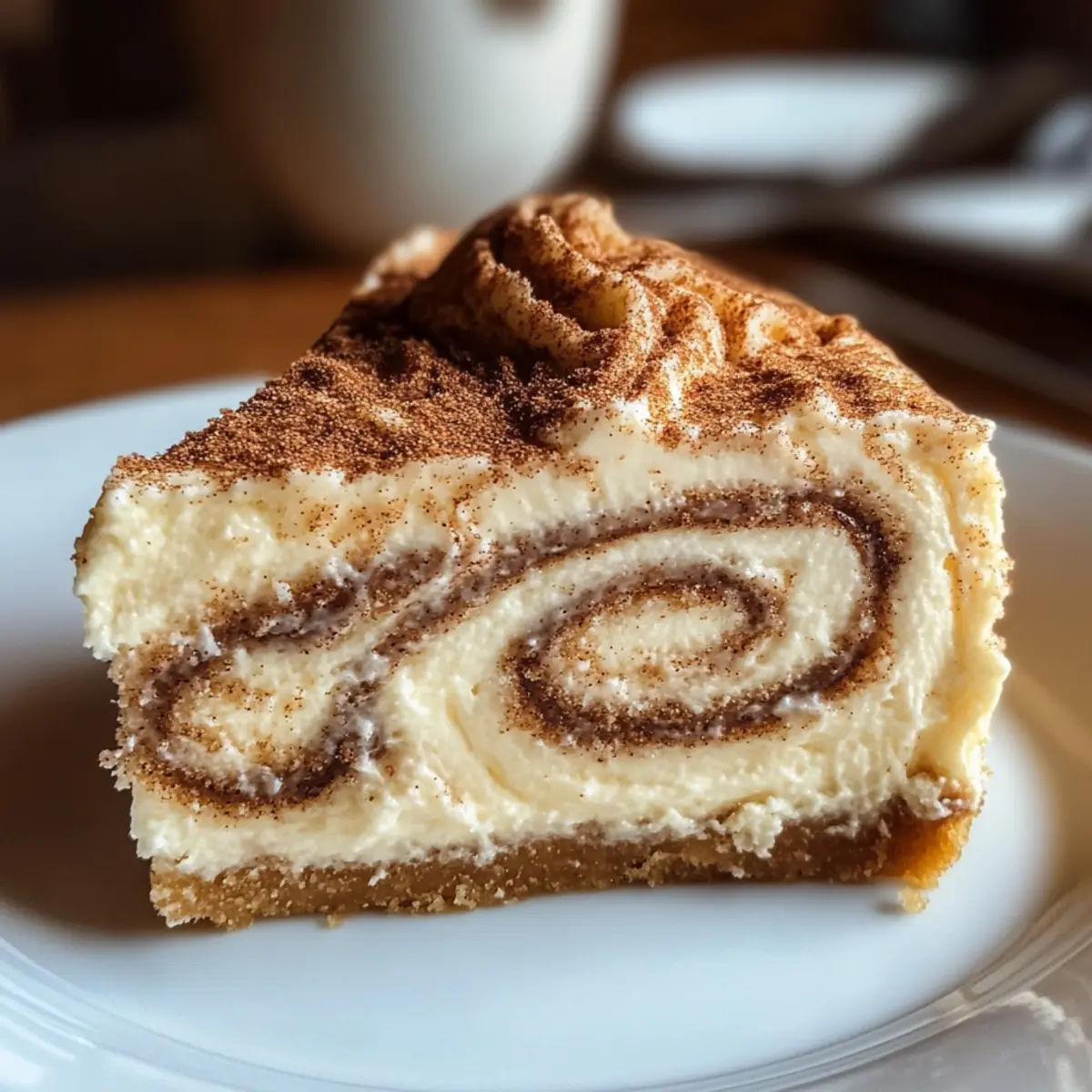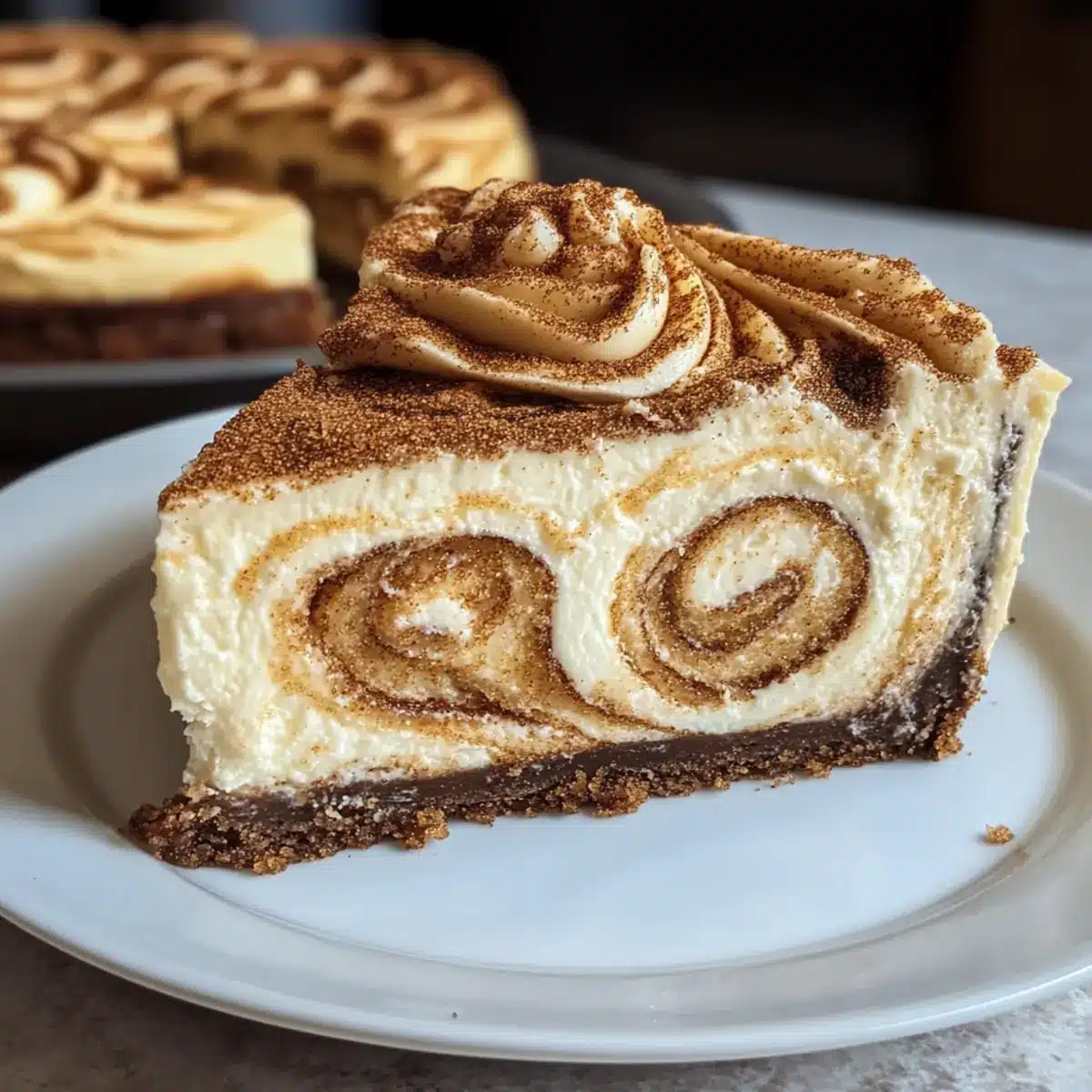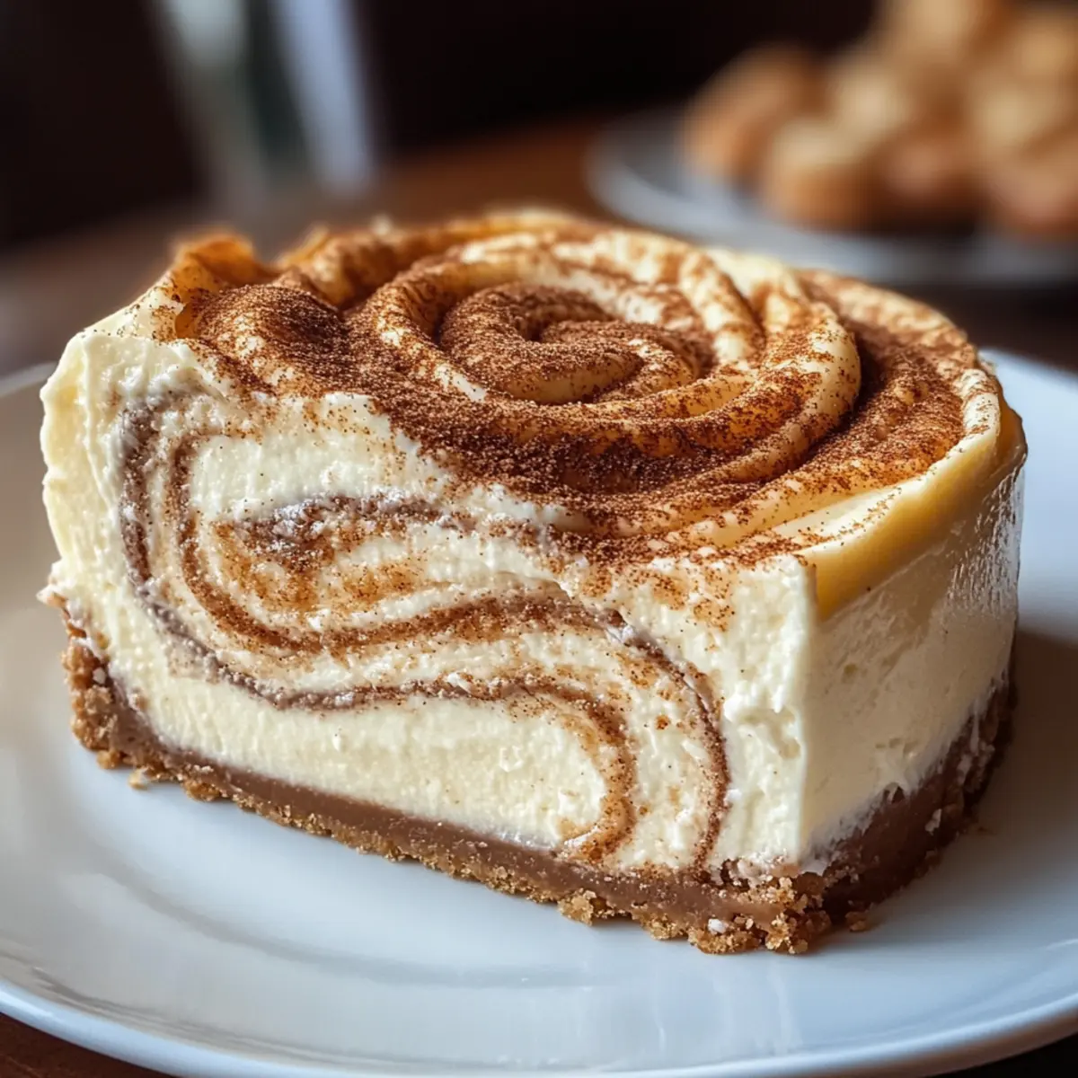 Wunderbare Textur: Der kühle, cremige Käsekuchen kontrastiert perfekt mit den warmen, zarten Zimtwirbeln, was ein beeindruckendes Geschmackserlebnis schafft.