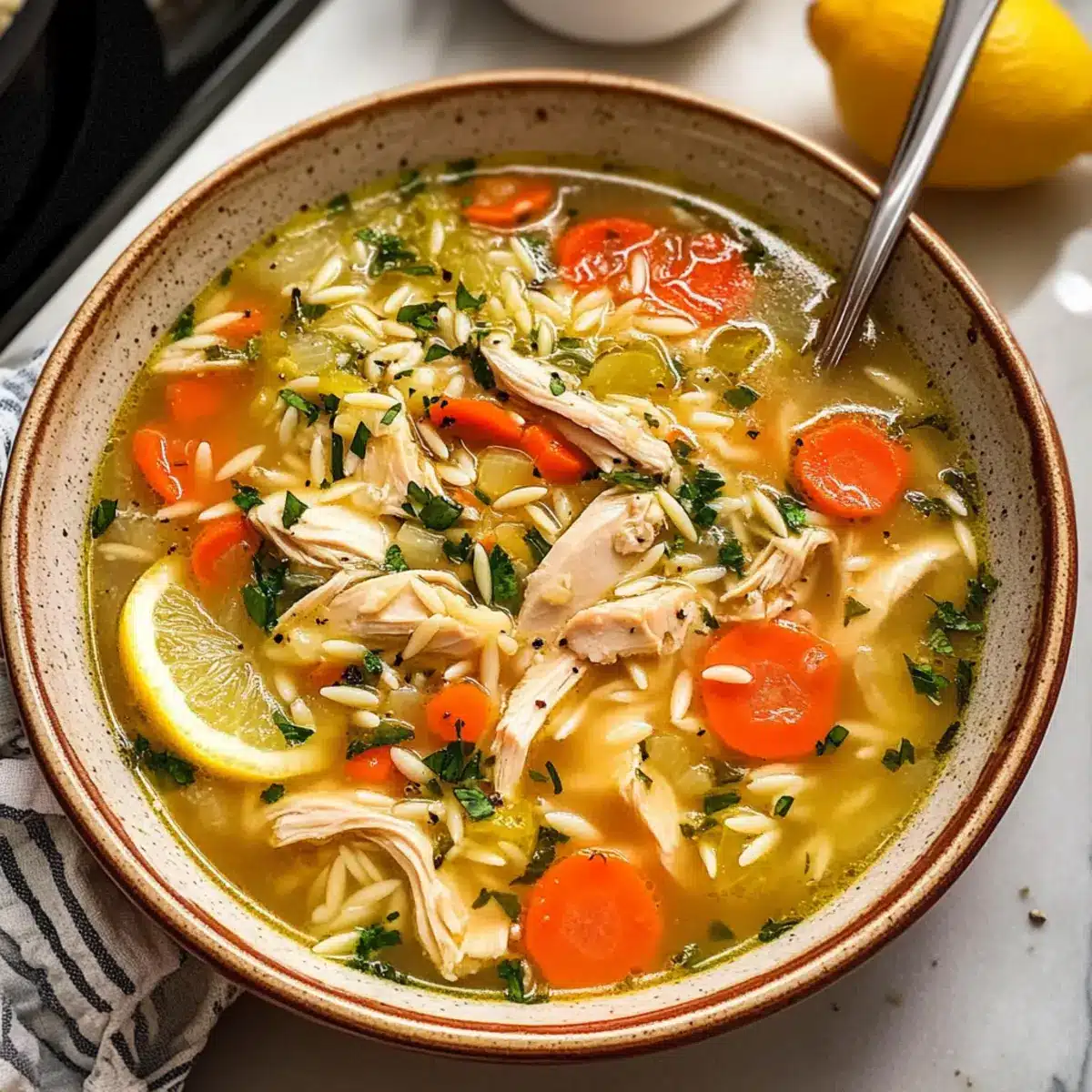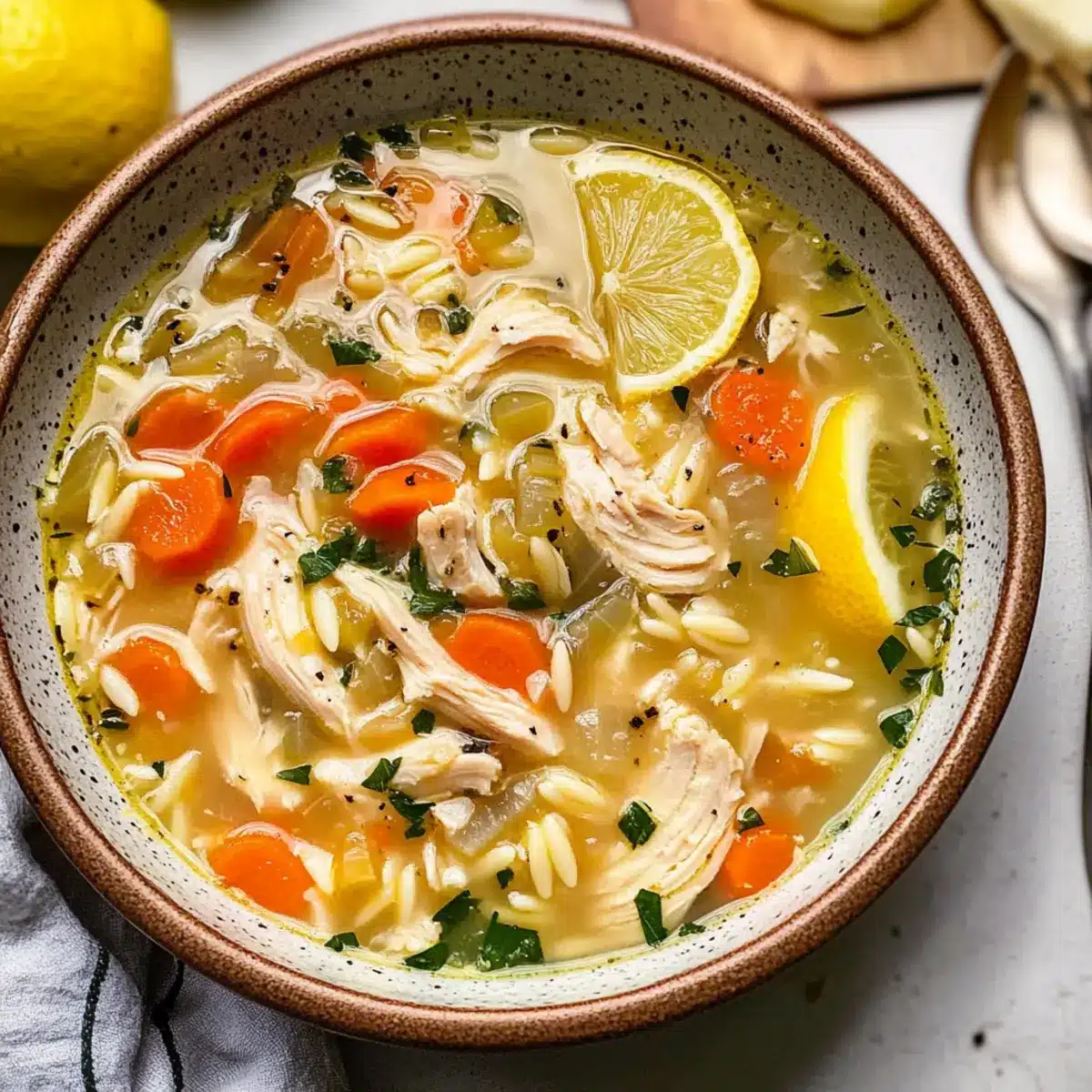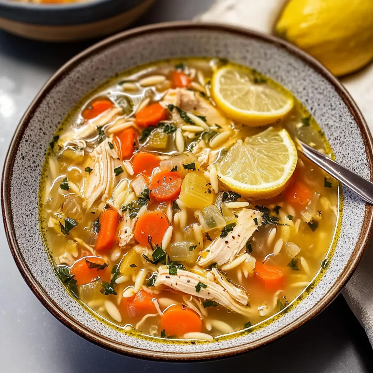 Die Zutaten in der Zitronen-Hühnchensuppe sind allgemein gesund, aber es ist wichtig, auf Allergien zu achten. Die Suppe enthält Hühnerfleisch und kann Gluten durch die Orzo-Pasta haben. Für glutenfreie Optionen ersetze die Orzo-Pasta durch Quinoa oder Reis. Wenn jemand in deiner Familie eine Hühnchenallergie hat, kannst du auch Bohnen für eine vegetarische Variante verwenden.