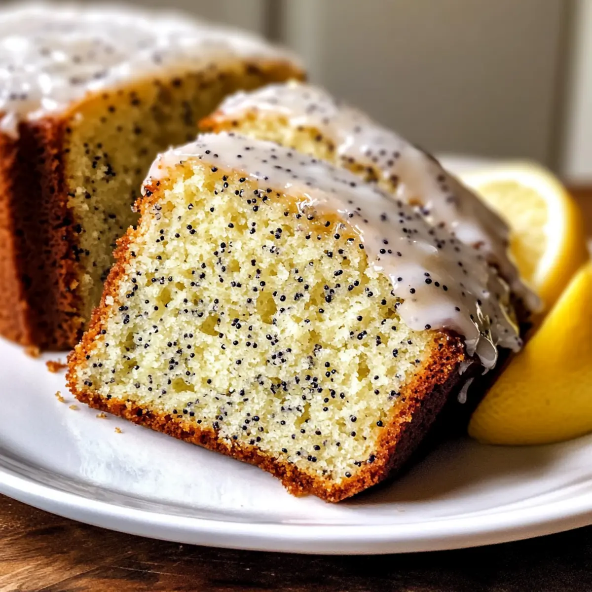 Sobald der Kuchen vollständig ausgekühlt ist, gießen Sie den Zuckerguss gleichmäßig über die Oberseite. Garnieren Sie nach Belieben mit zusätzlichen Mohnsamen oder Zitronenscheiben für einen frischen, dekorativen Touch. Ihr Zitronen-Mohn-Samen-Kuchen ist nun bereit, serviert zu werden!